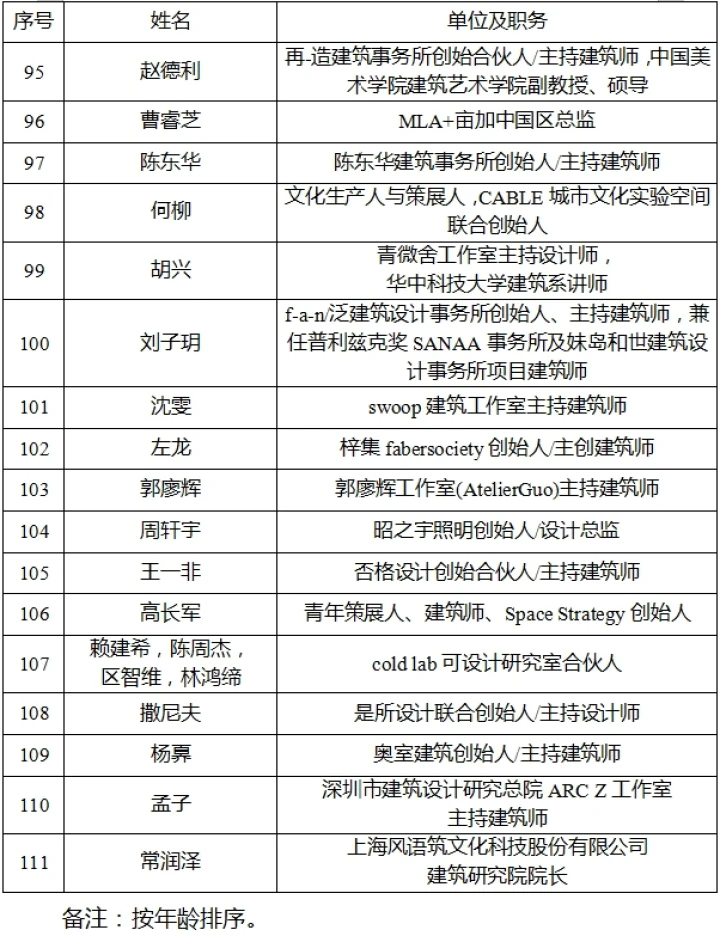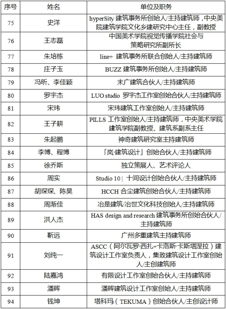 建筑藝術計劃百大人才庫成員名單
