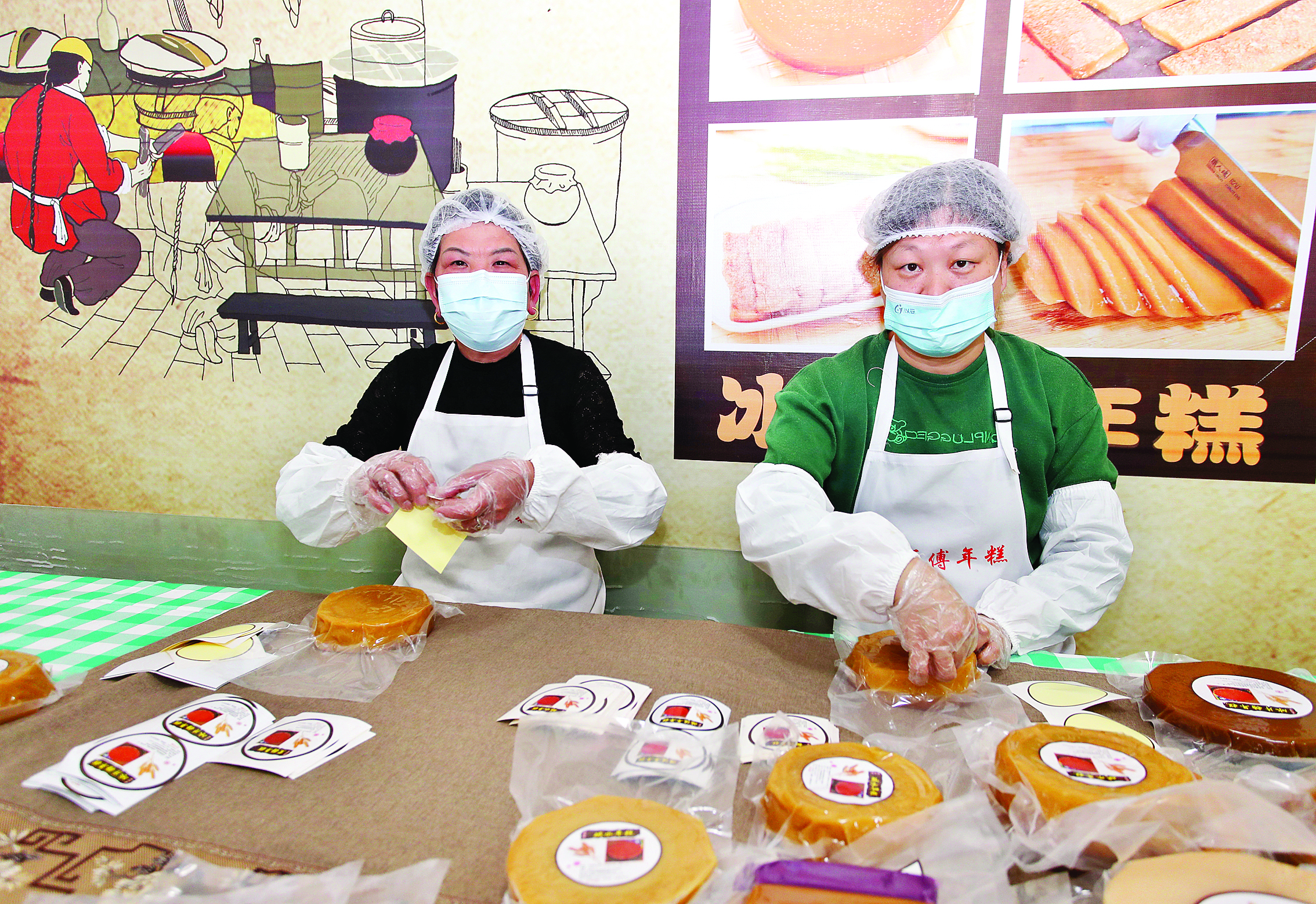 工人在給新出爐的年糕貼上標簽。惠州日報記者鐘暢新 攝