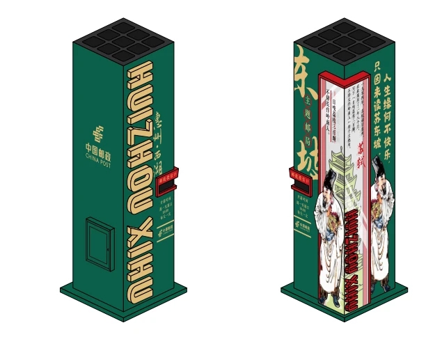 東坡主題郵局提取宋代建筑和東坡文化元素,結合西湖景觀,融合郵文化元素,并選取當代著名畫家劉克寧老師《問墨蘇東坡》畫作進行設計建造,連主題郵局的郵筒設計都別具特色,讓人驚艷!游客不僅可以在東坡郵局寄出給親人朋友的明信片,還可在游西湖時欣賞東坡郵局背面的燈光透視圖——《問墨蘇東坡》精美畫作。惠州東坡郵局將成為西湖景區(qū)文化、東坡文化和城市文化的全新展示窗口。