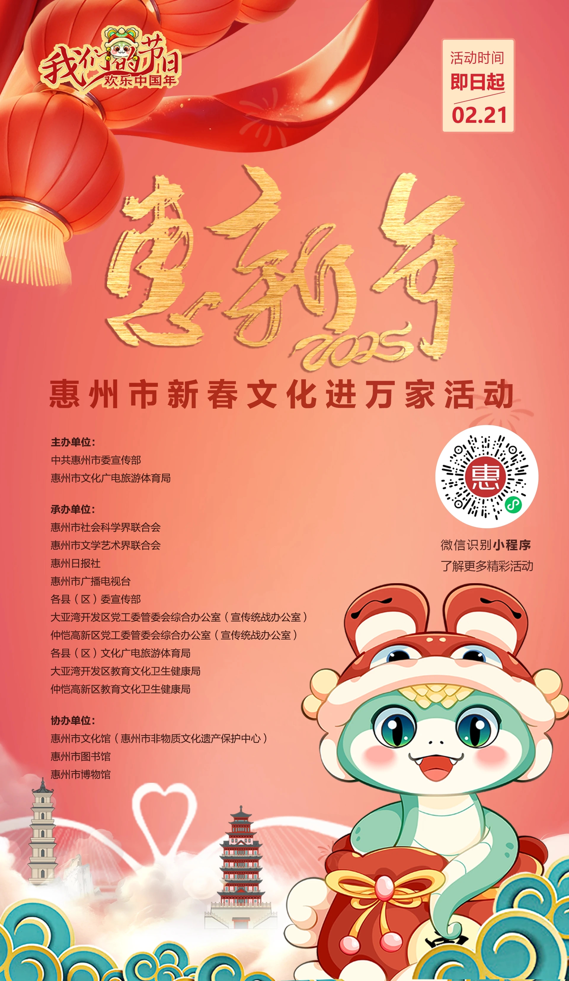 本次活動(dòng)由中共惠州市委宣傳部、惠州市文化廣電旅游體育局主辦,旨在積極推動(dòng)文化傳承發(fā)展和繁榮興盛,深入實(shí)施2025年“我們的中國(guó)夢(mèng)——文化進(jìn)萬家”活動(dòng),以形式多樣的文化活動(dòng)營(yíng)造歡樂吉祥、溫暖和順的濃厚節(jié)日氛圍。