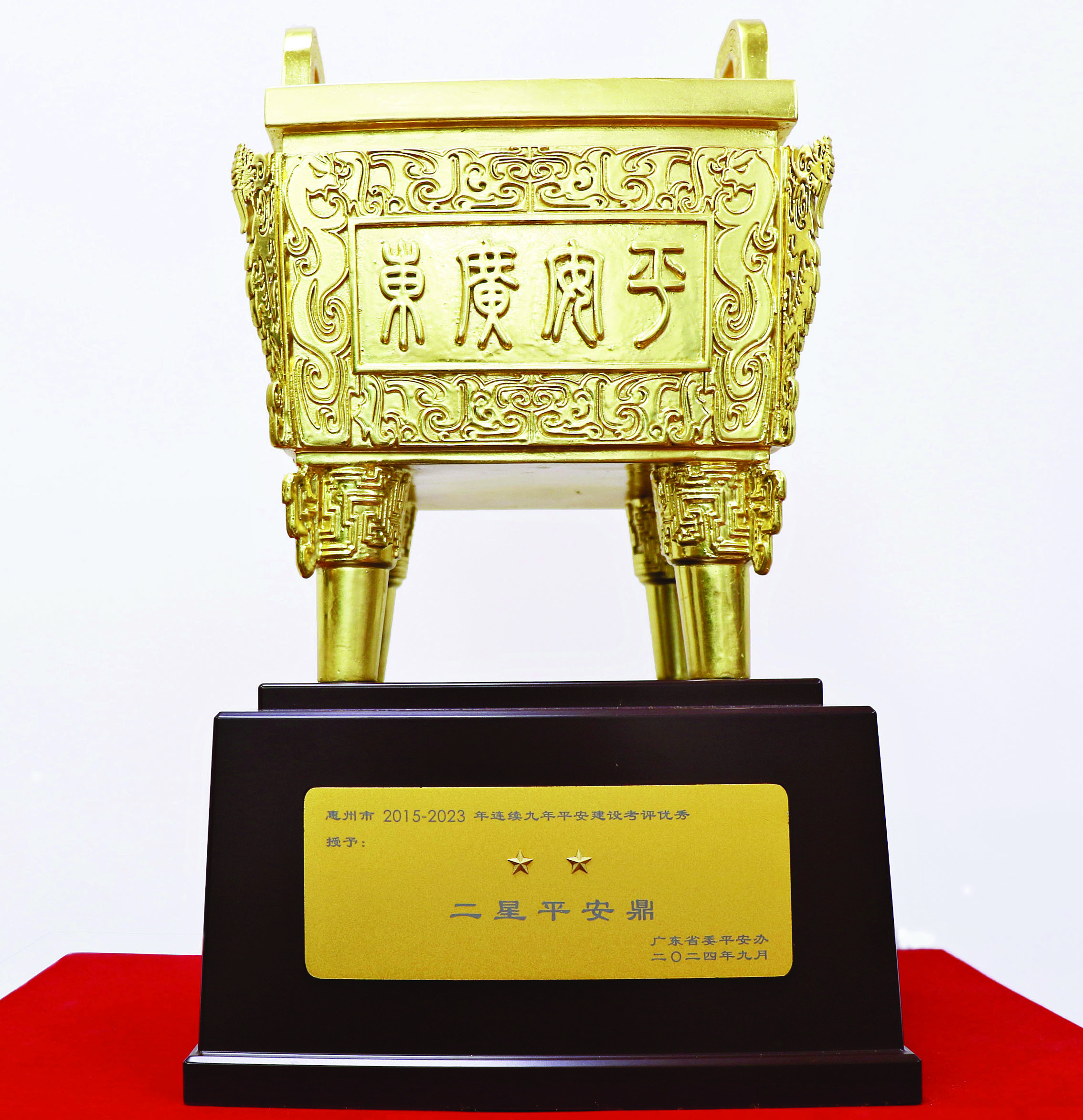 這一年,惠州實(shí)現(xiàn)連續(xù)9年獲平安廣東建設(shè)考評(píng)優(yōu)秀等次,成為全省唯一榮獲“二星平安鼎”的地級(jí)市。