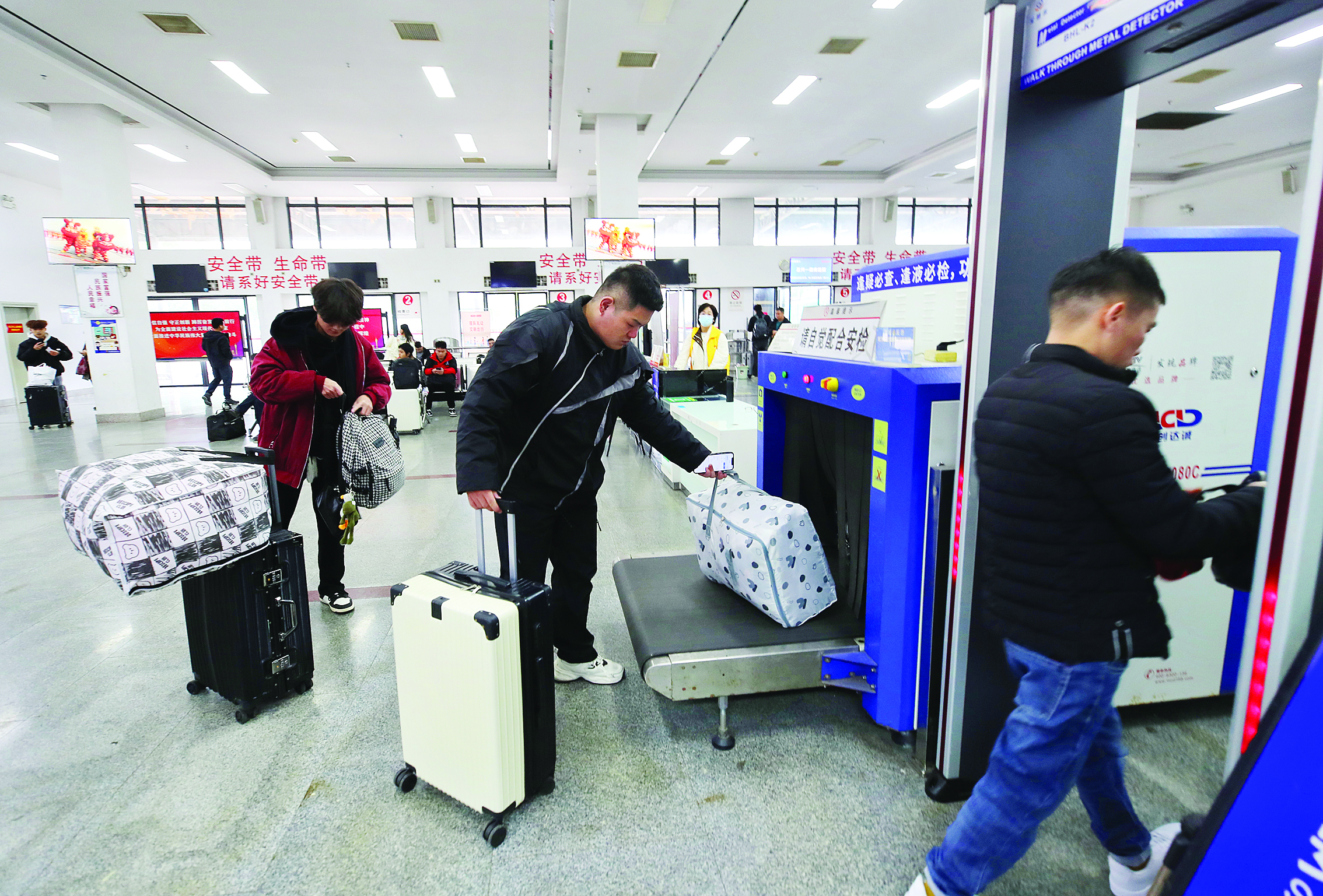 1月26日上午,惠州南線汽車客運(yùn)站,乘客有序通過安檢。惠州日報記者鐘暢新 攝