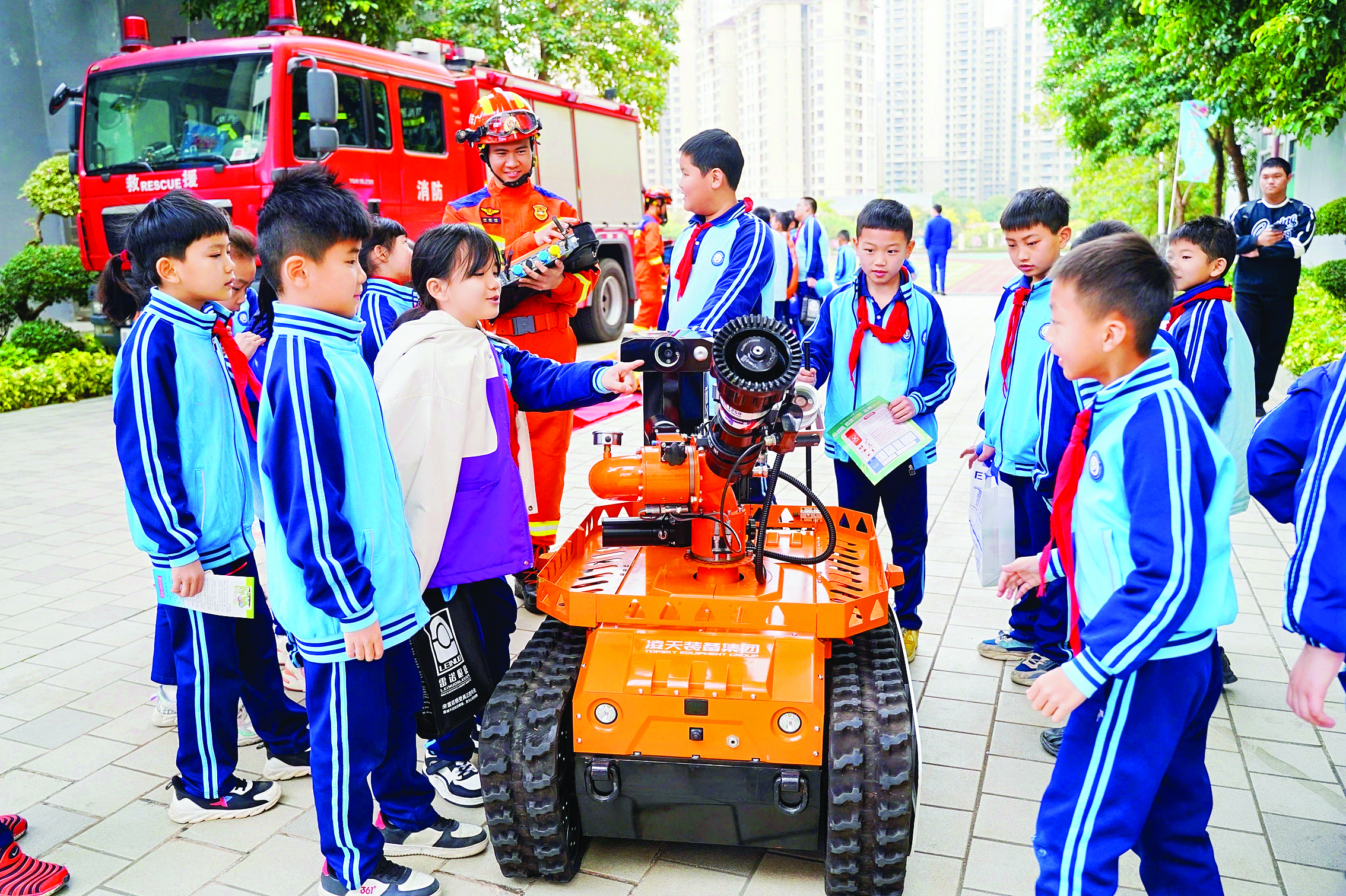 同學們在體驗消防設(shè)備。惠州日報記者葉麗莎 通訊員金易里 攝