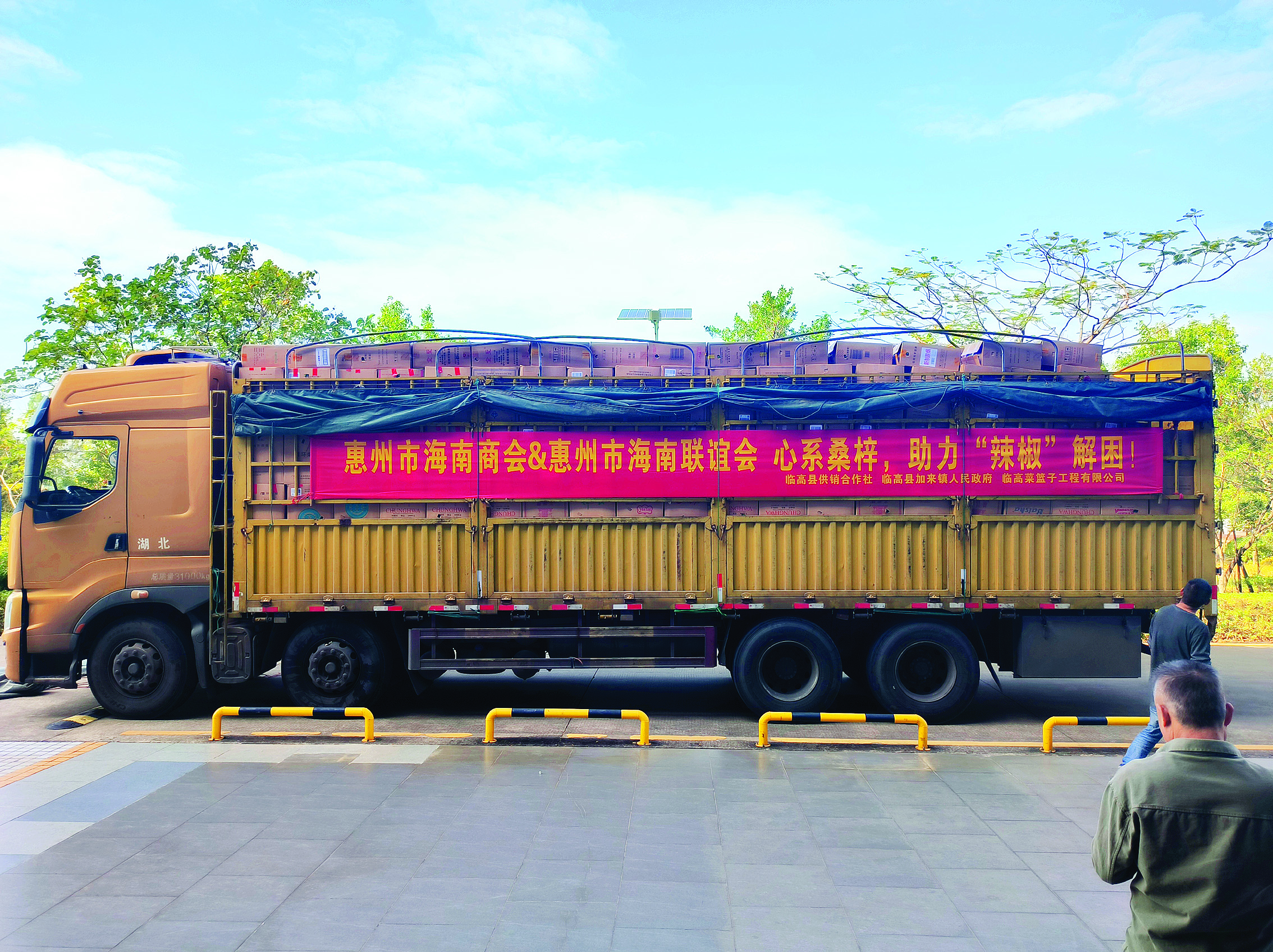 來自海南臨高的2萬多斤滯銷辣椒抵達廣東惠州。