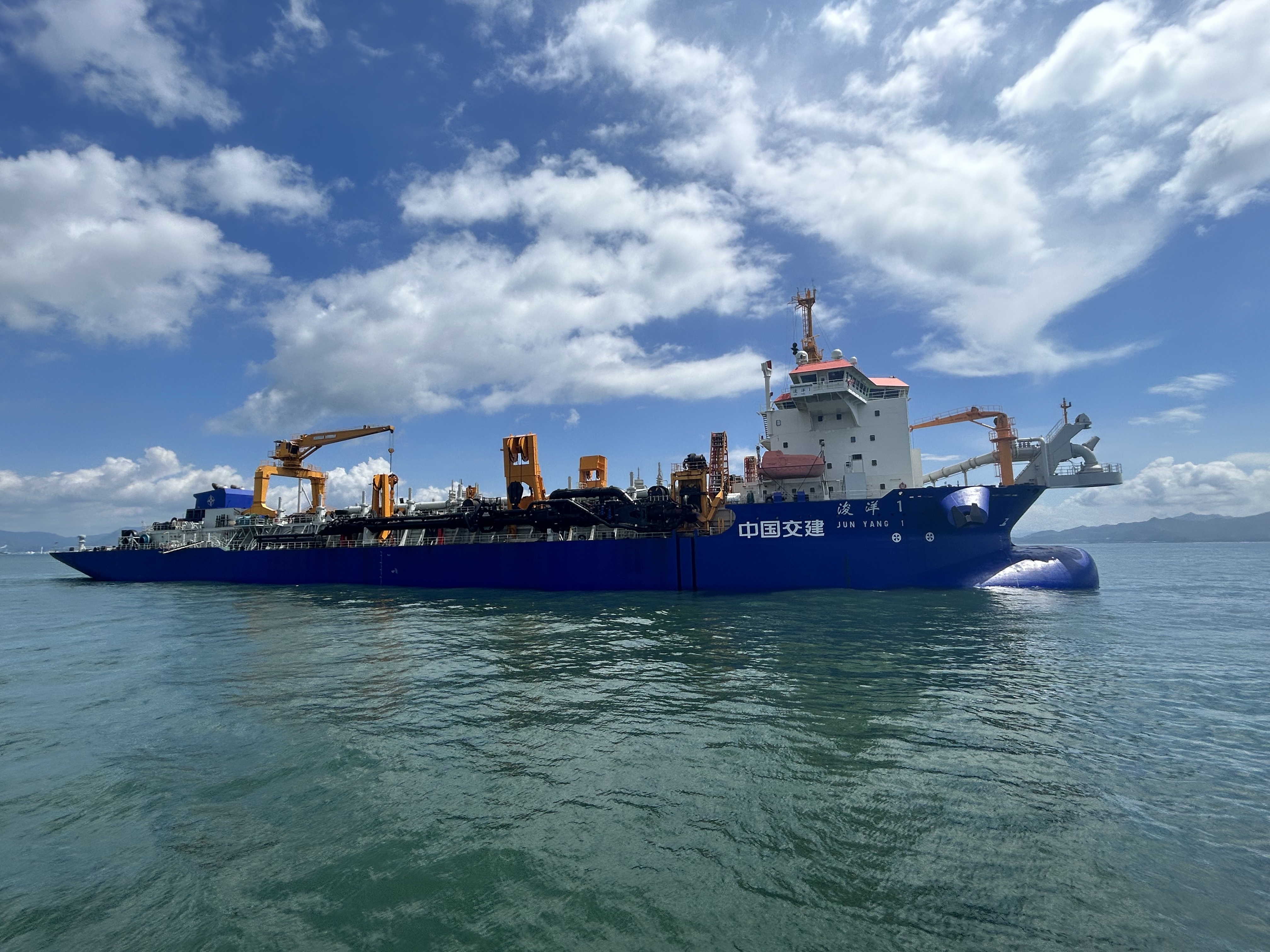 亞洲最大自航耙吸挖泥船“浚洋1”在惠州港東聯(lián)作業(yè)區(qū)進港航道施工。