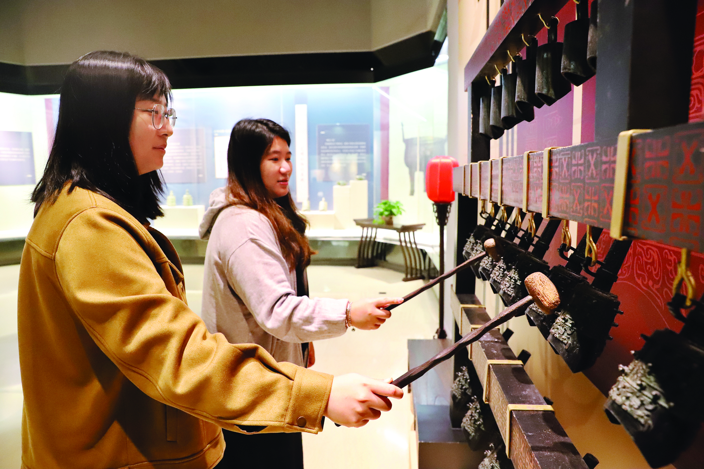市民體驗(yàn)編鐘演奏。惠州日報(bào)記者鐘暢新 攝