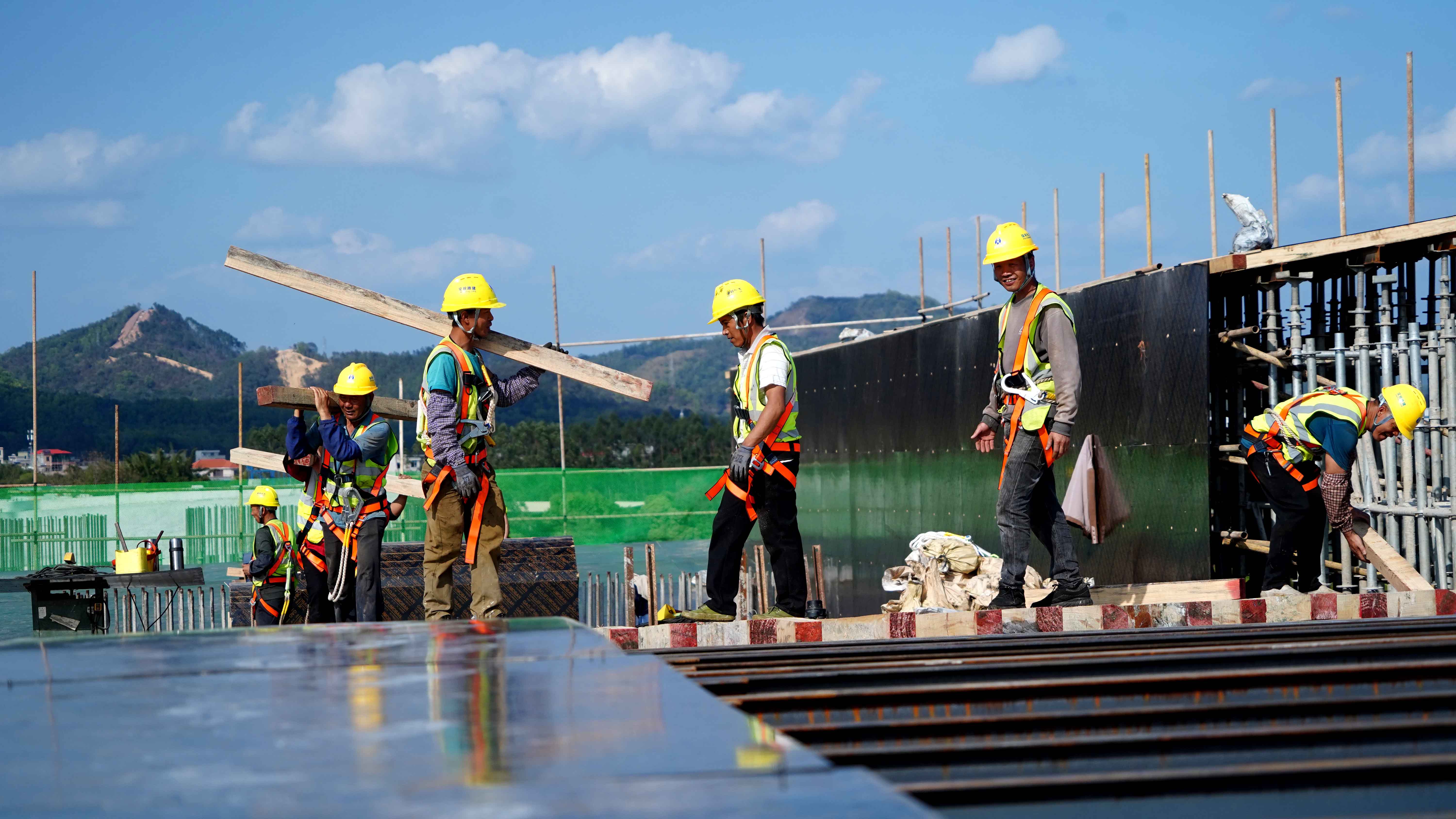 1號(hào)公路7號(hào)制梁場(chǎng),工人正在生產(chǎn)作業(yè)。