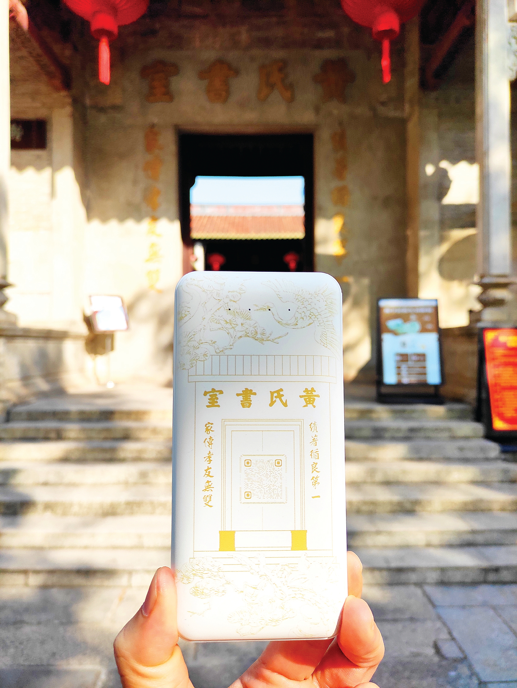 黃氏書室大門前的花鳥磚雕成為“鶴禧”充電寶設(shè)計元素。