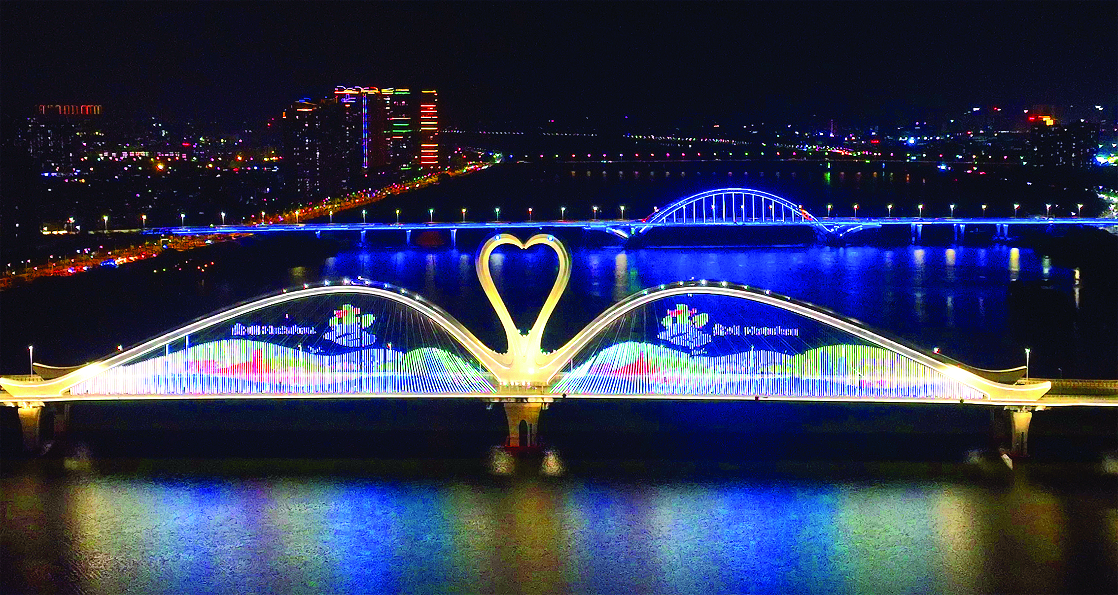 3月26日晚,鵝城大橋等城市地標(biāo)亮燈,以燈光秀展示惠州城市品牌形象標(biāo)識等內(nèi)容。惠州日報(bào)記者鐘暢新 攝