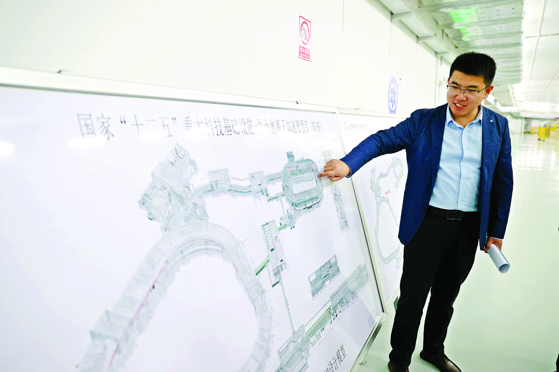 中國(guó)科學(xué)院近代物理研究所工程師、HIAF現(xiàn)場(chǎng)安裝負(fù)責(zé)人王儒亮介紹HIAF的建設(shè)情況。