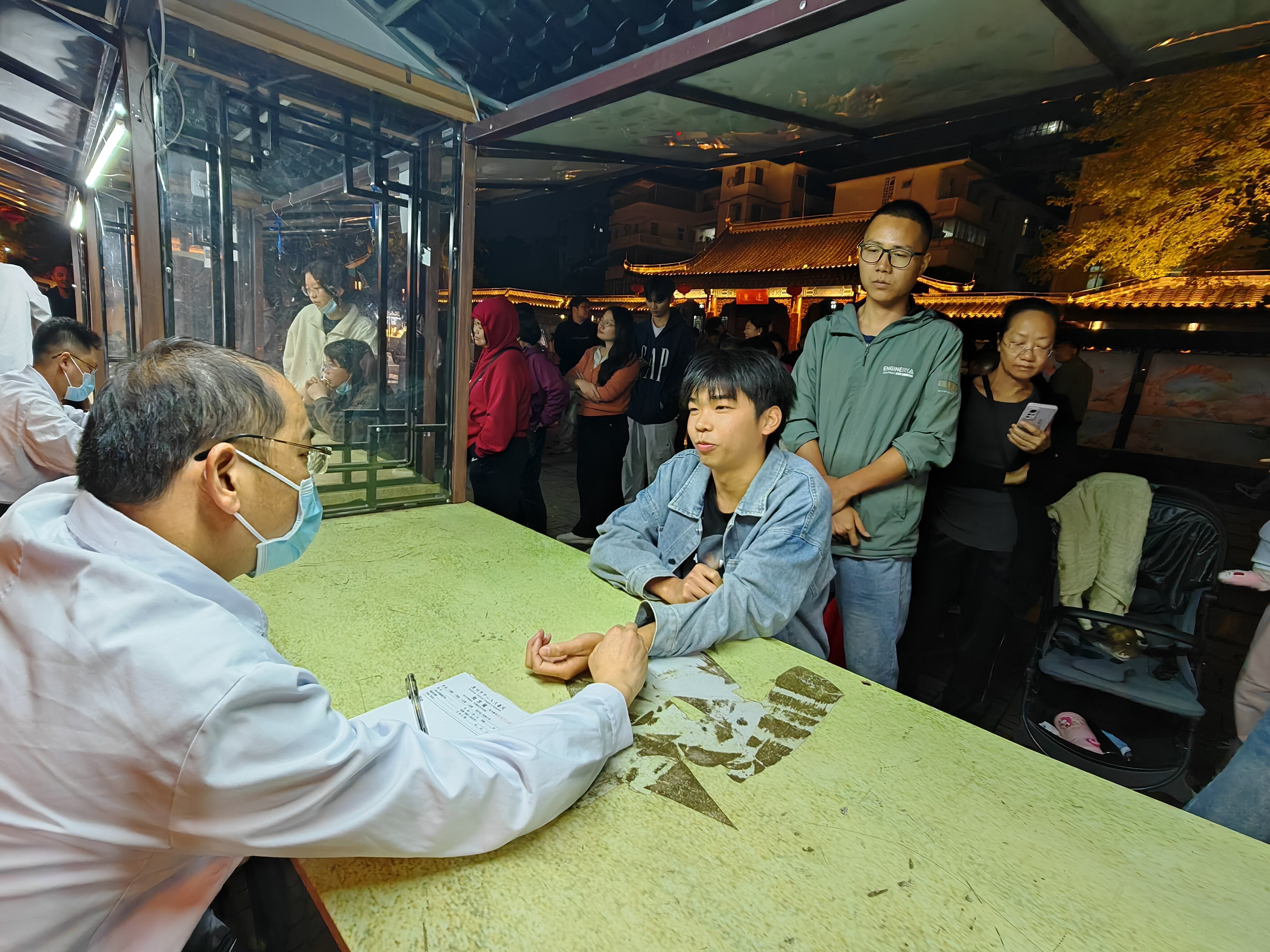 當日下午5時30分,市中心人民醫(yī)院專家醫(yī)生們化身“夜市攤主”,現(xiàn)場坐診,為前來咨詢的群眾義務診療,并提供個性化的健康建議,沒多久攤位前就排起了長隊。