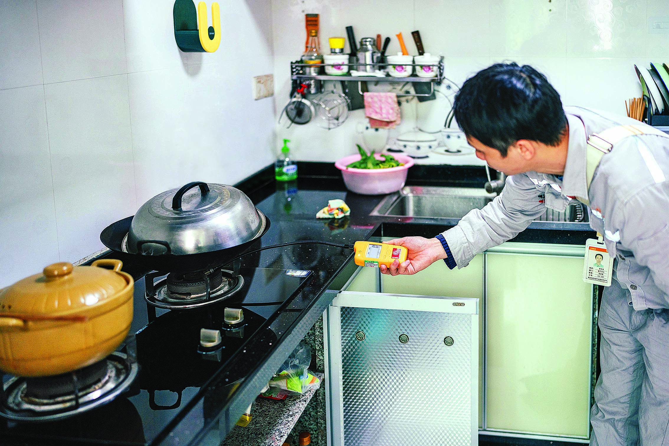 惠州燃?xì)夤ぷ魅藛T開(kāi)展入戶安檢。惠州東江圖片社供圖