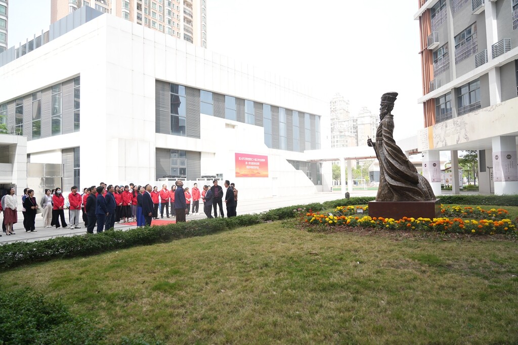 講座開始前,市東坡學校東坡居士塑像揭幕,為校園增添新的文化地標。該雕塑由惠州市泥塑協(xié)會會長王云鵬創(chuàng)作,將東坡風骨化作藝術表達。