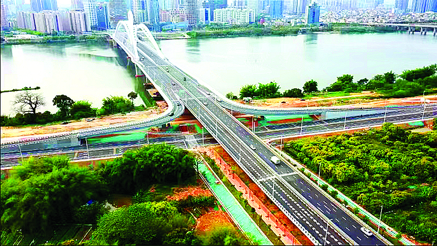 鵝城大橋成為聯(lián)動市區(qū)東江兩岸惠民興業(yè)新動脈。惠州日報記者張宇琪 攝