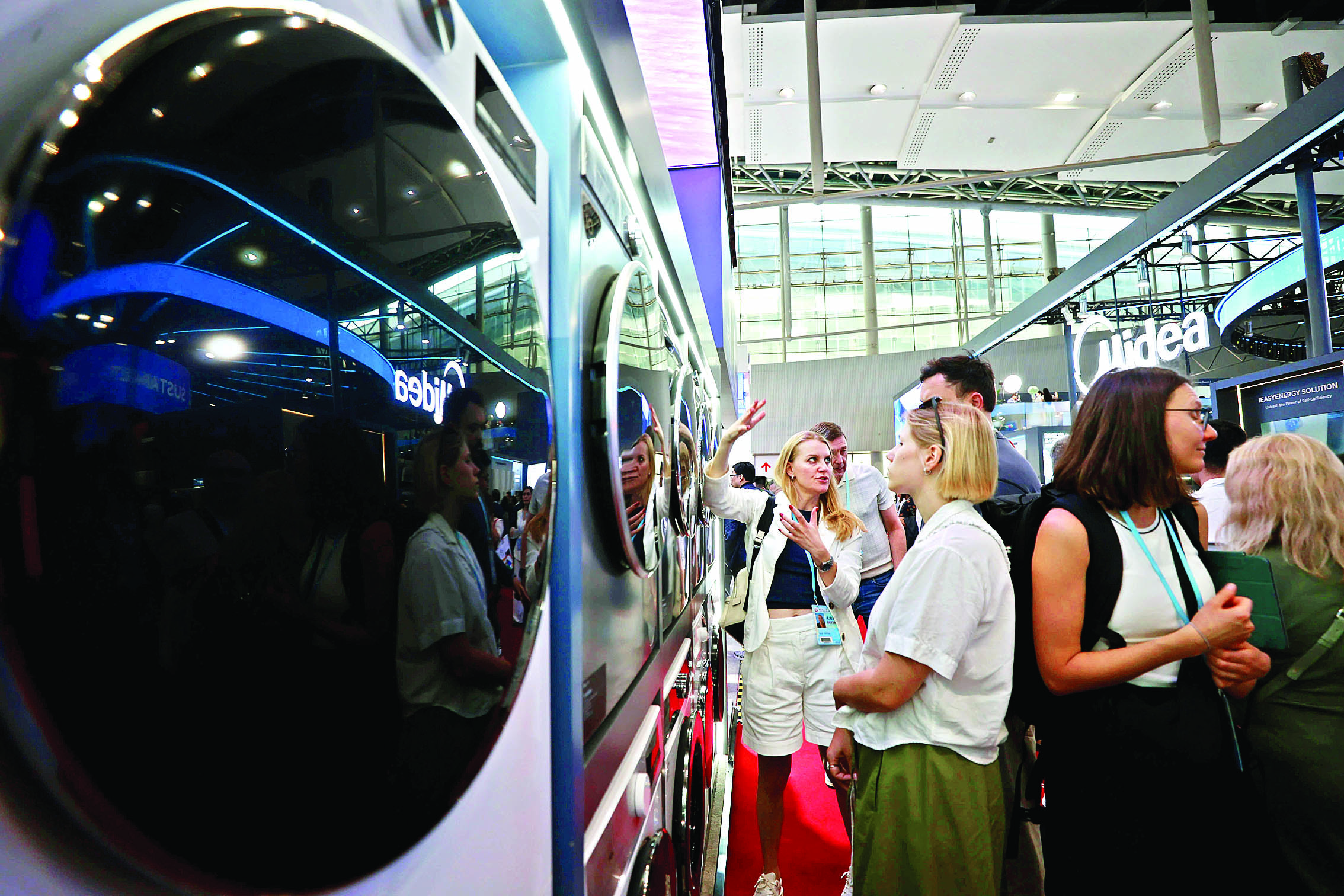 采購(gòu)商在TCL展區(qū)了解新品洗衣機(jī)。