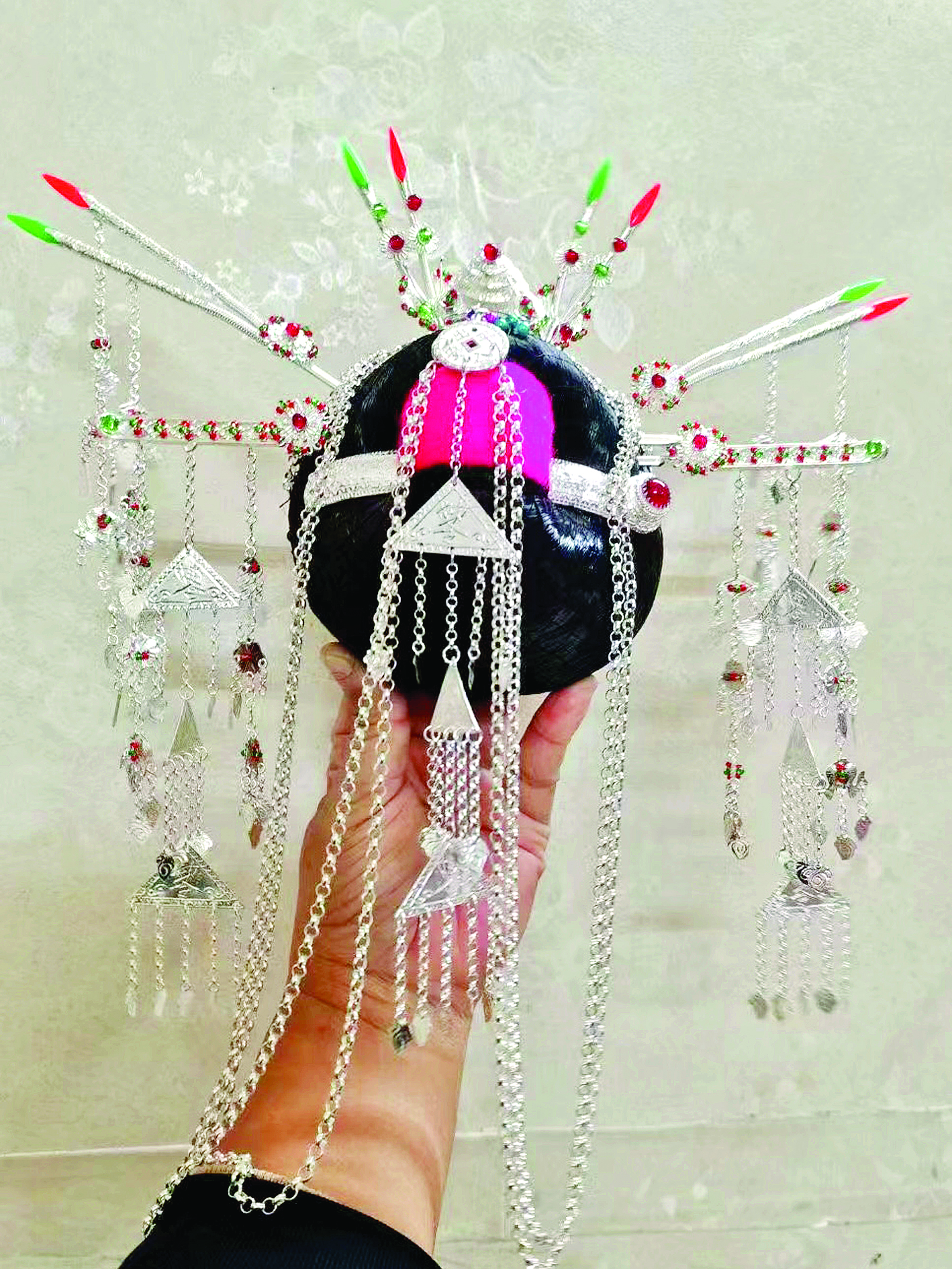 工序在胡加明的口中說出,聽上去好像很簡單,但其實(shí)每一步驟都離不開耐心細(xì)致。精美的制作,讓胡加明的銀飾廣受歡迎。胡加明說:“收到最多訂單的時(shí)候,需要同時(shí)制作5~6套發(fā)簪,一套銀飾發(fā)簪制作下來需要需耗時(shí)半月以上。”