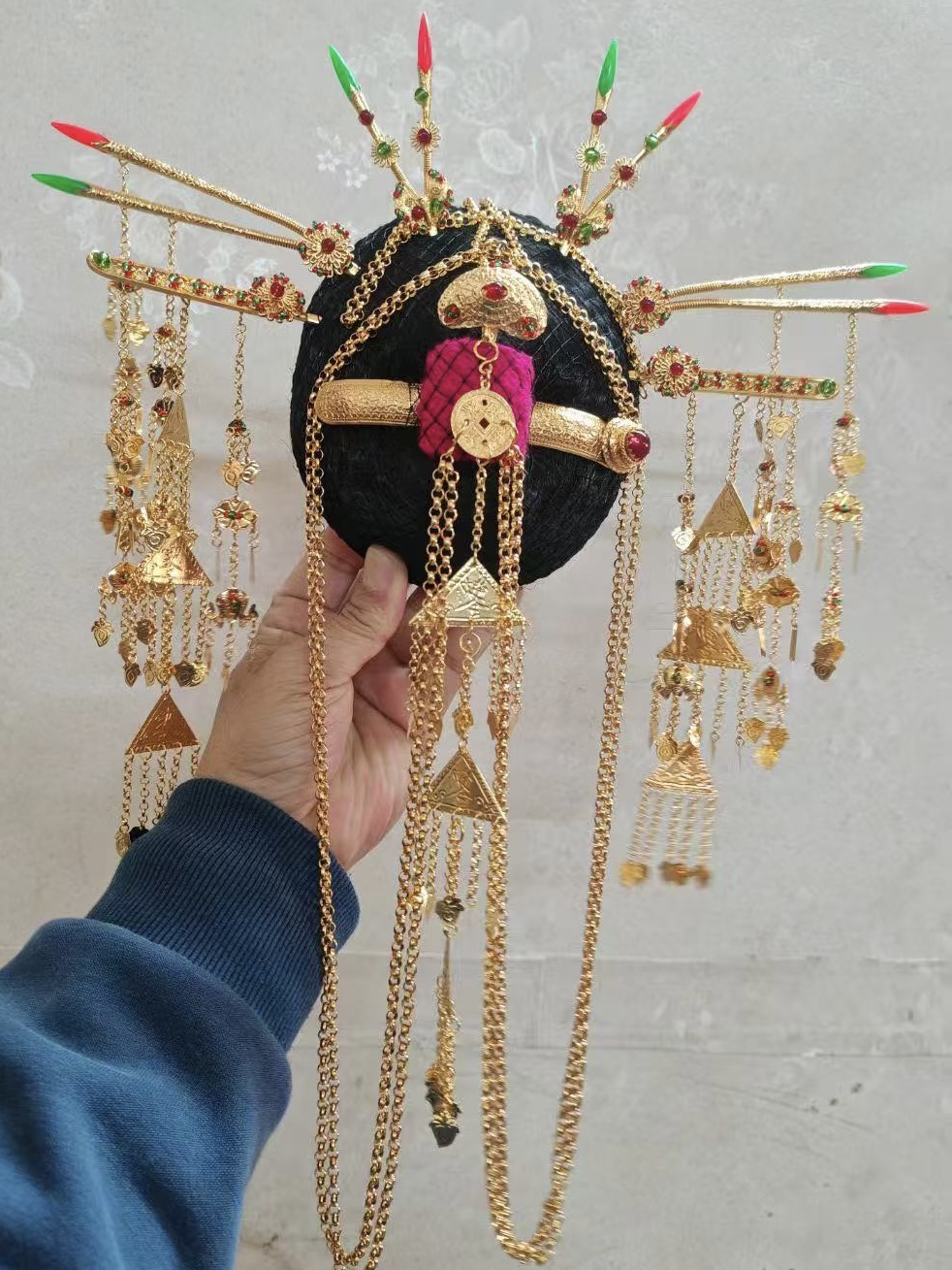 胡加明介紹,傳統(tǒng)發(fā)簪材質(zhì)多為銀制,后因防銹與保存需求,逐漸改用銅鍍金材質(zhì)。早期發(fā)簪樣式簡約,以素簪為主。而后隨著生活品質(zhì)不斷提升,融入動(dòng)態(tài)元素(如彈簧、鏈條)和貝殼、魚蝦、銅錢、壽桃等寓意吉祥的垂墜飾品,形成錯(cuò)落有致的立體效果,根據(jù)市場需求推出“龍鳳呈祥”“蝴蝶飛舞”等復(fù)雜款式。