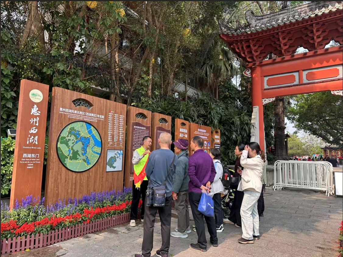 志愿者在惠州西湖為游客作講解。惠州日報記者駱國紅 攝