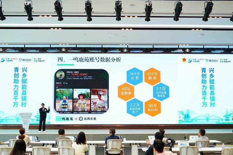 博羅湖鎮(zhèn)的鄭則尊《一鳴鹿苑——珠三角線上養(yǎng)鹿第一人》項(xiàng)目路演現(xiàn)場(chǎng)。