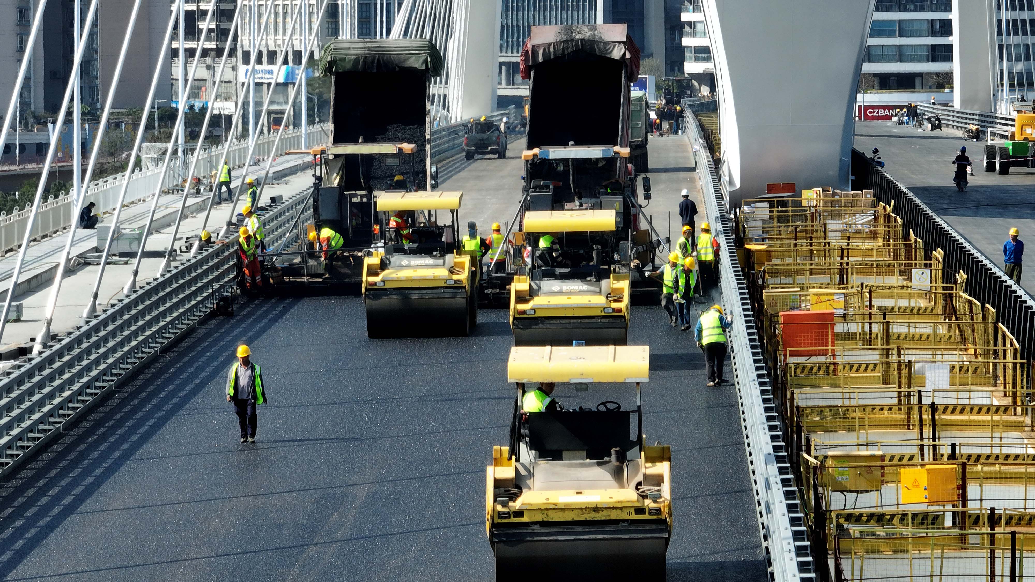 2024年12月10日 鵝城大橋主橋鋪瀝青。