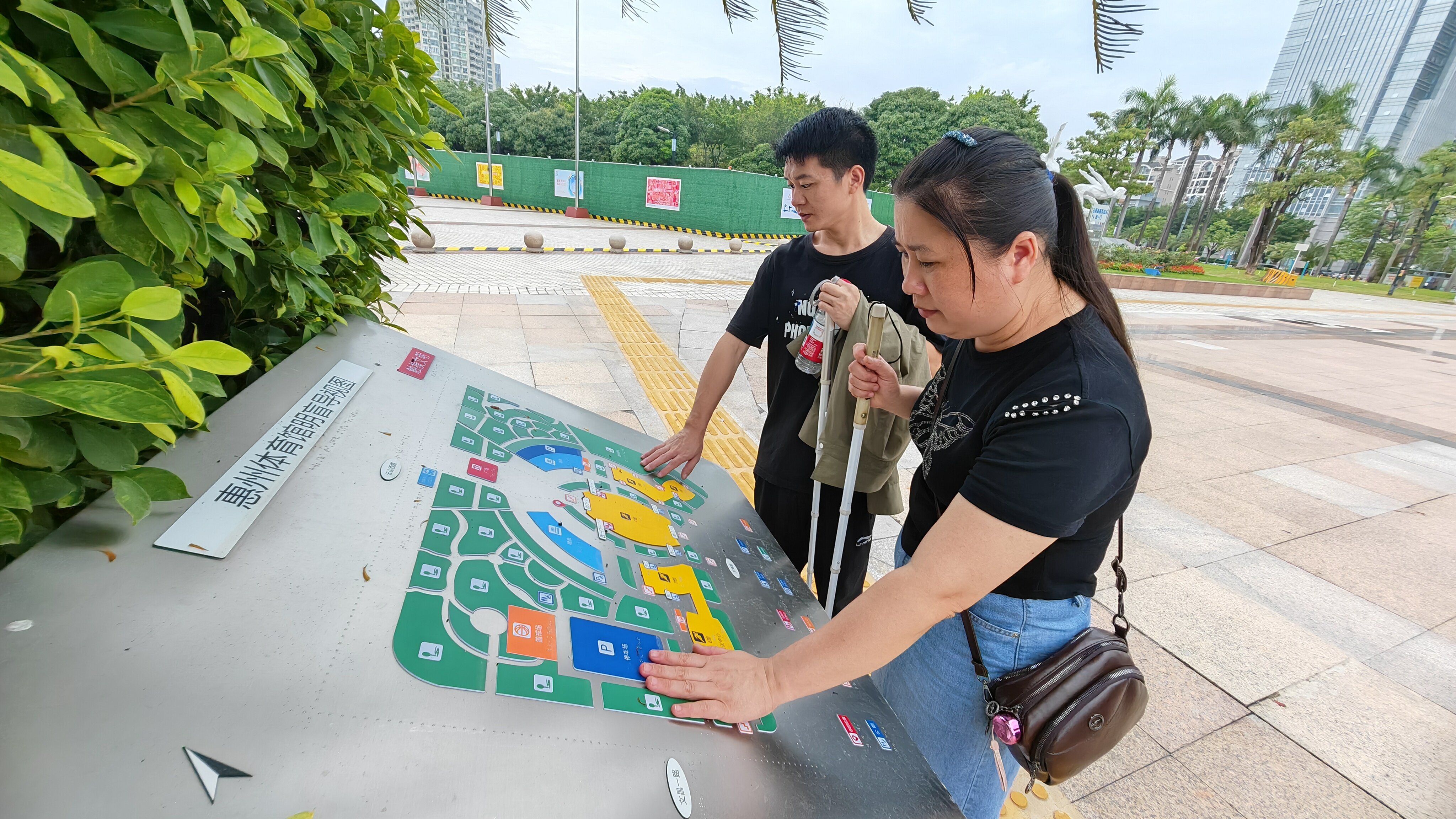 惠州體育館門口設(shè)置了盲人導(dǎo)覽圖,為視障人士提供便利。
