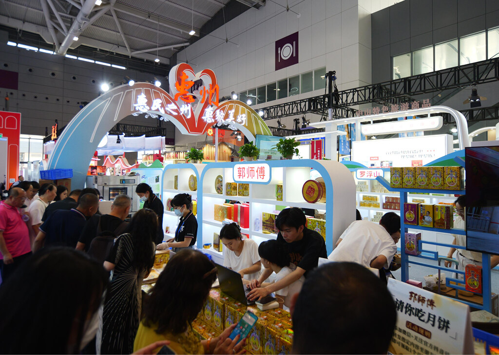 第二十一屆文博會惠州展館,館內(nèi)郭師傅月餅人氣旺盛。惠州日報記者黃鑫威 攝