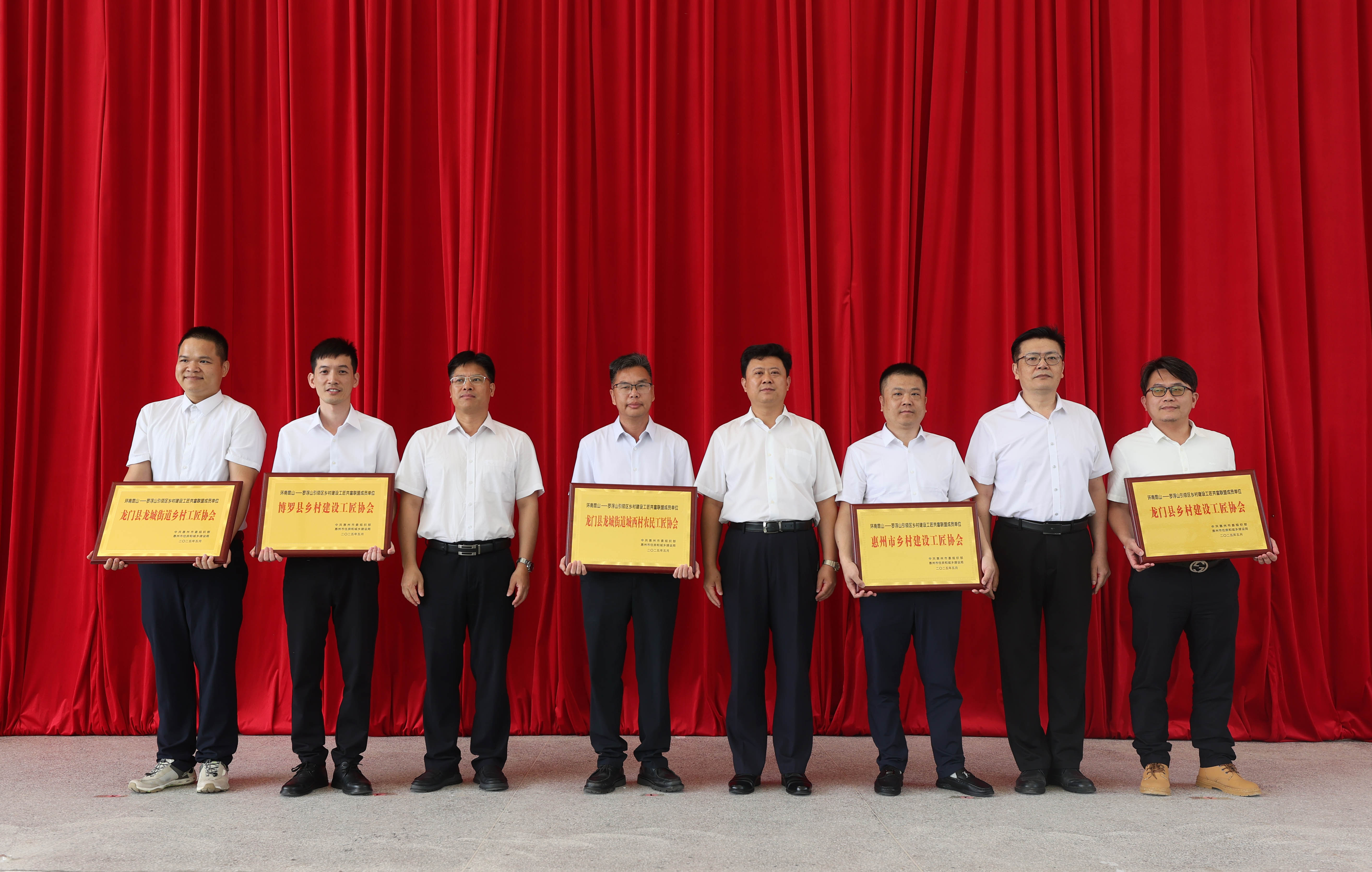 5月26日,環(huán)南昆山-羅浮山引領(lǐng)區(qū)鄉(xiāng)村建設(shè)工匠共富聯(lián)盟成立大會(huì)在龍門(mén)舉行,出席活動(dòng)的相關(guān)領(lǐng)導(dǎo)向5家協(xié)會(huì)會(huì)長(zhǎng)頒發(fā)聯(lián)盟成員單位牌匾。