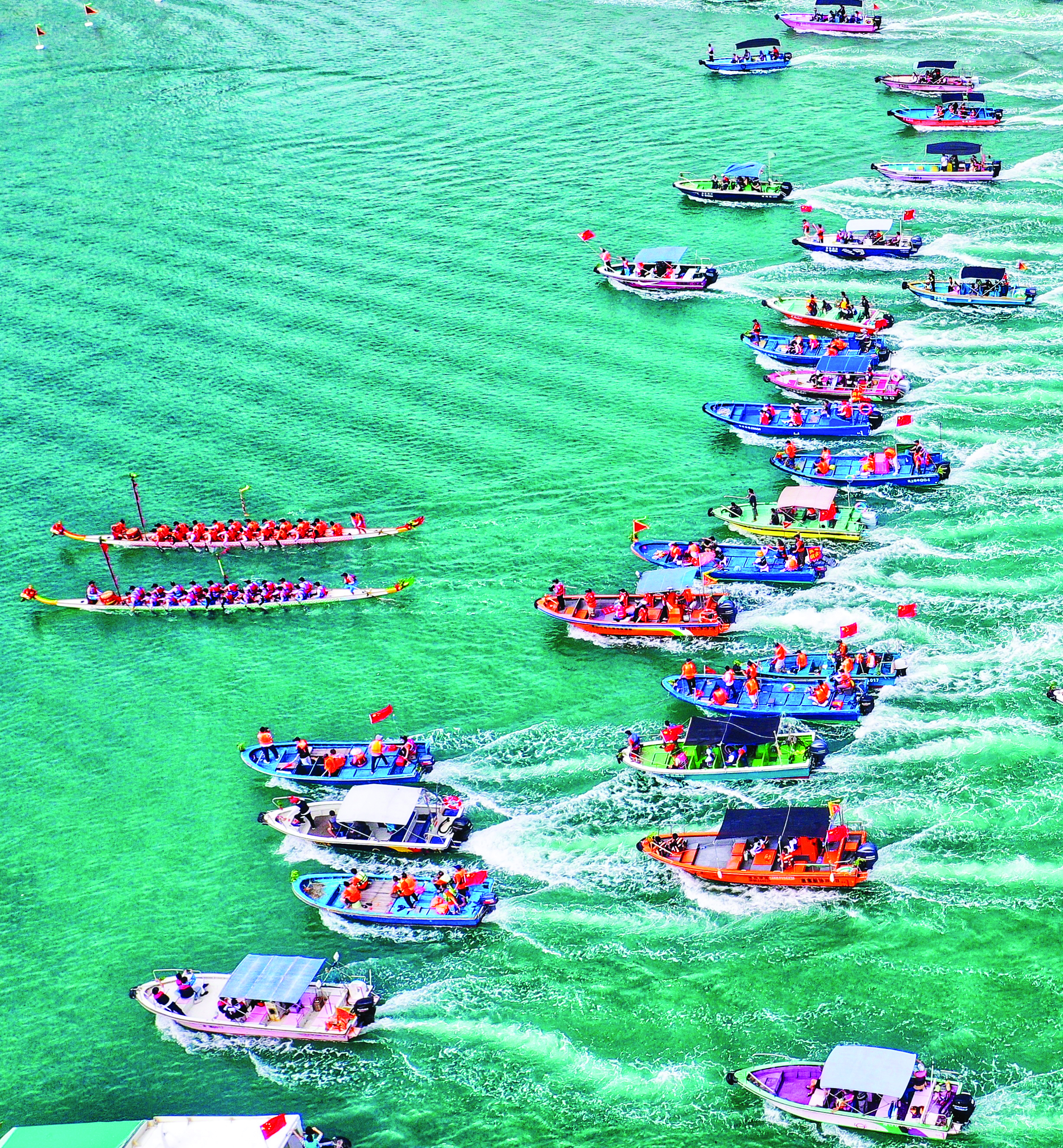 河道內(nèi)、翠湖里,你追我趕,鑼鼓聲、劃槳聲劈波逐浪,水面上演“速度與激情”;看臺(tái)上、河岸邊,人頭攢動(dòng),歡呼聲、吶喊聲此起彼伏,匯成一片歡樂海洋……