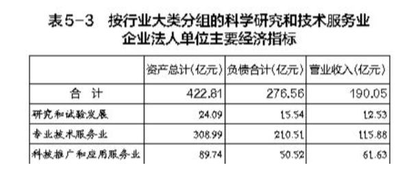 2023年末,科學(xué)研究和技術(shù)服務(wù)業(yè)企業(yè)法人單位資產(chǎn)總計422.81億元,比2018年末增長156.1%;負(fù)債合計276.56億元,比2018年末增長193.7%。