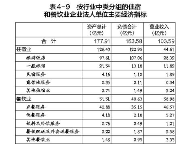 2023年末,住宿和餐飲業(yè)企業(yè)法人單位資產(chǎn)總計177.91億元,比2018年末增長44.5%;負(fù)債合計163.58億元,比2018年末增長57.7%。