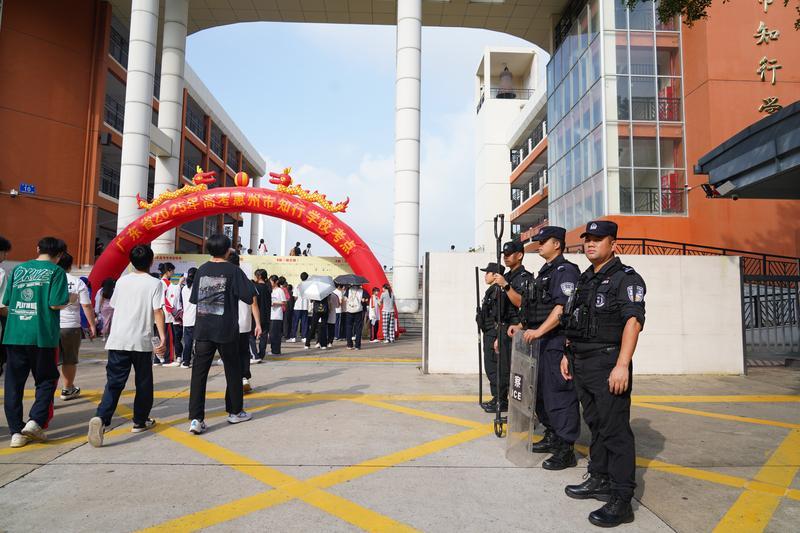 高考首日,惠州公安出動警力3300人次在全市33個考點開展安保工作,護航高考。
