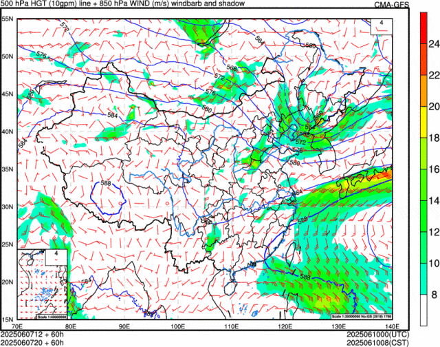 從風(fēng)場(chǎng)圖看,右下角“旋轉(zhuǎn)”起來(lái)的為臺(tái)風(fēng)。