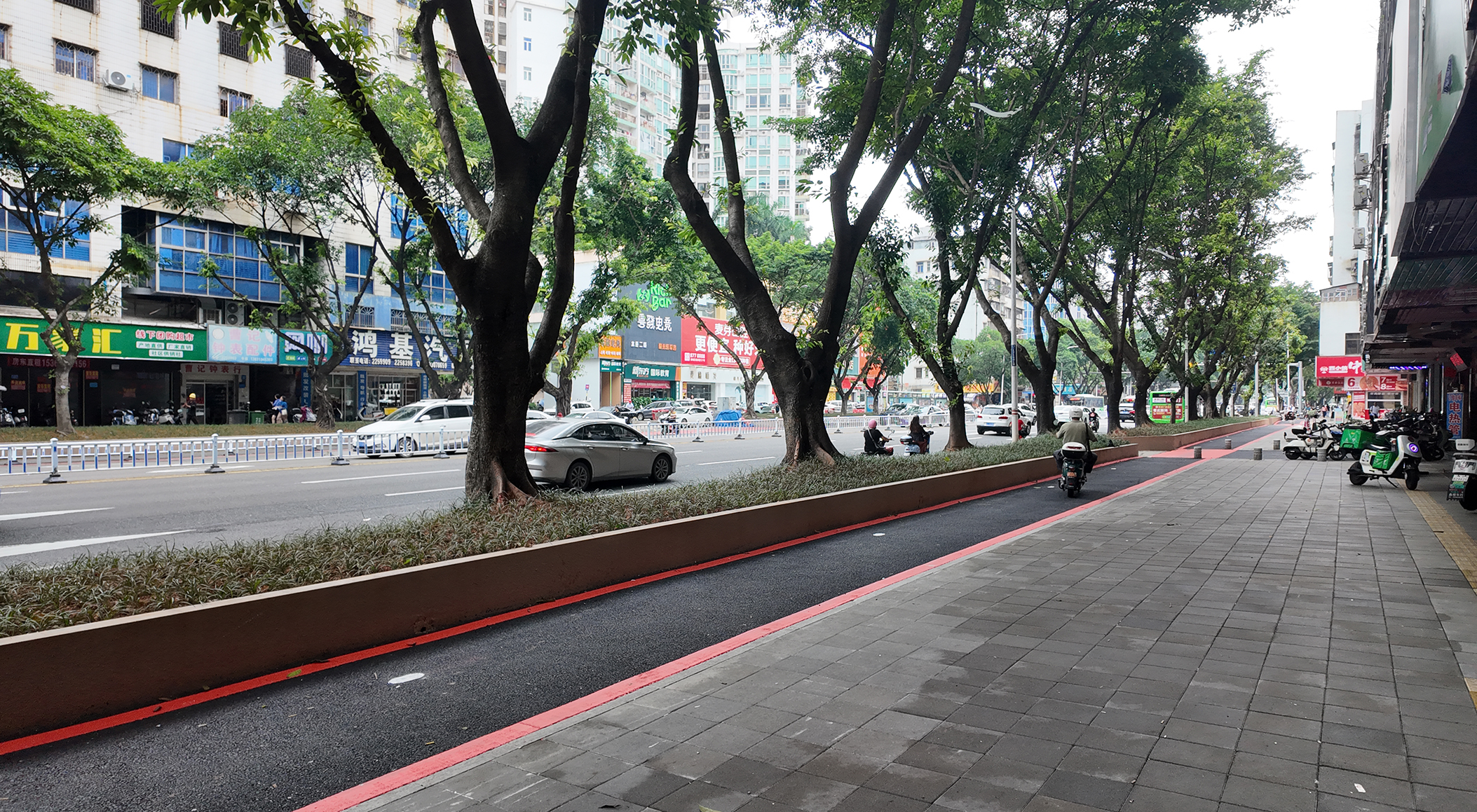 市區(qū)東湖西路改造提升,修建了樹池和非機動車道。惠州日報記者鐘暢新 攝