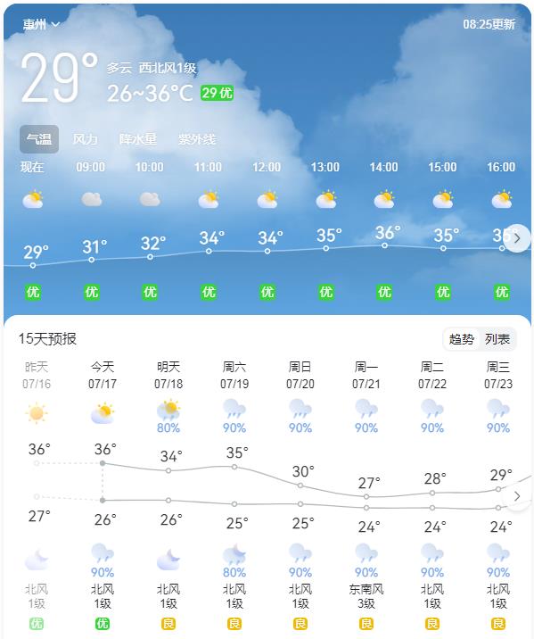 惠州日報訊 (記者劉建威)7月15日上午,全市各縣(區(qū))高溫黃色預(yù)警信號相繼生效。