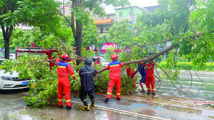 仲愷陳江消防隊及時清理街道上的倒伏樹木。 惠州日報記者劉乙端 通訊員劉素梅 攝