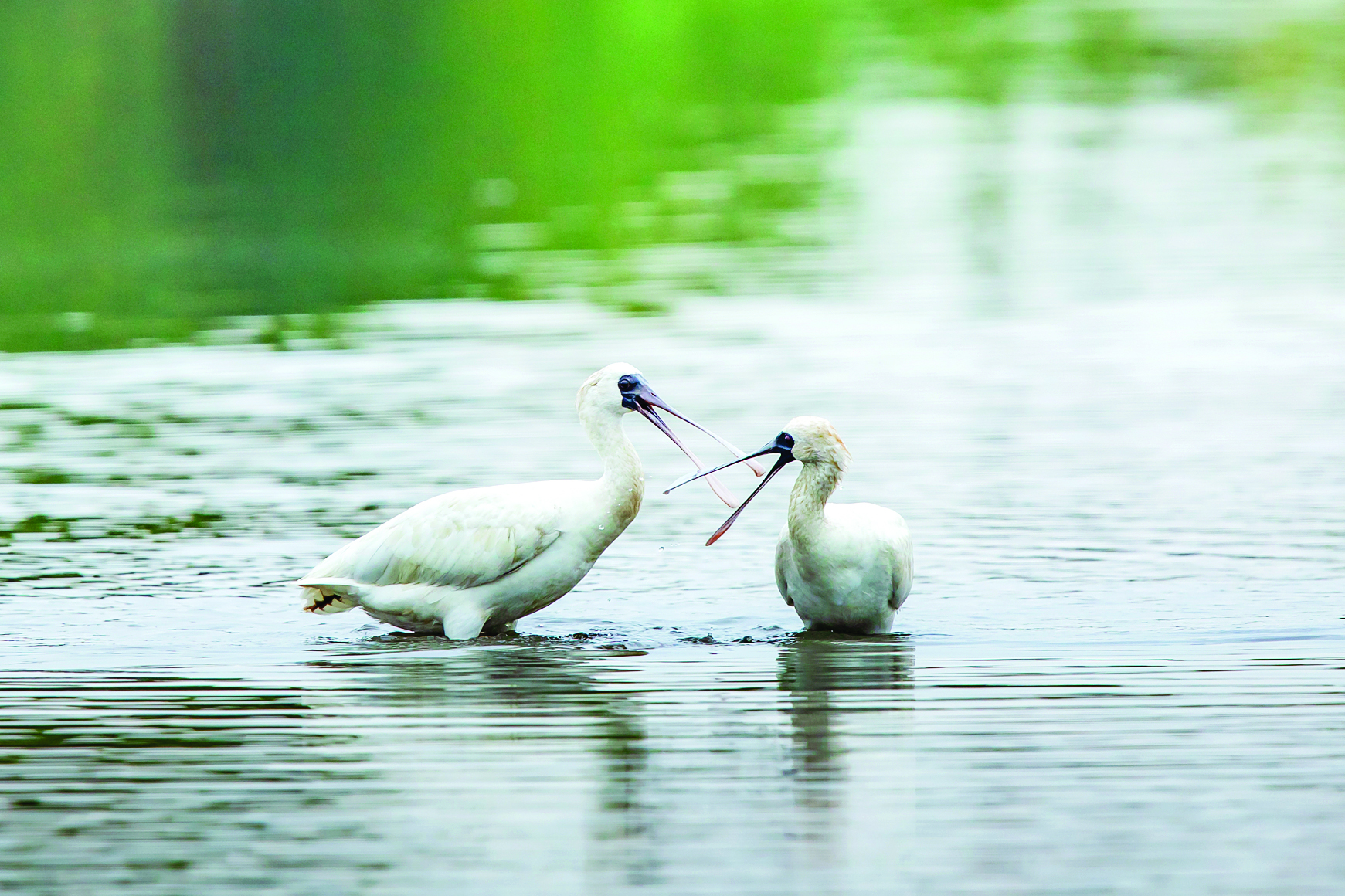 惠東縣沿海灘涂的黑臉琵鷺。