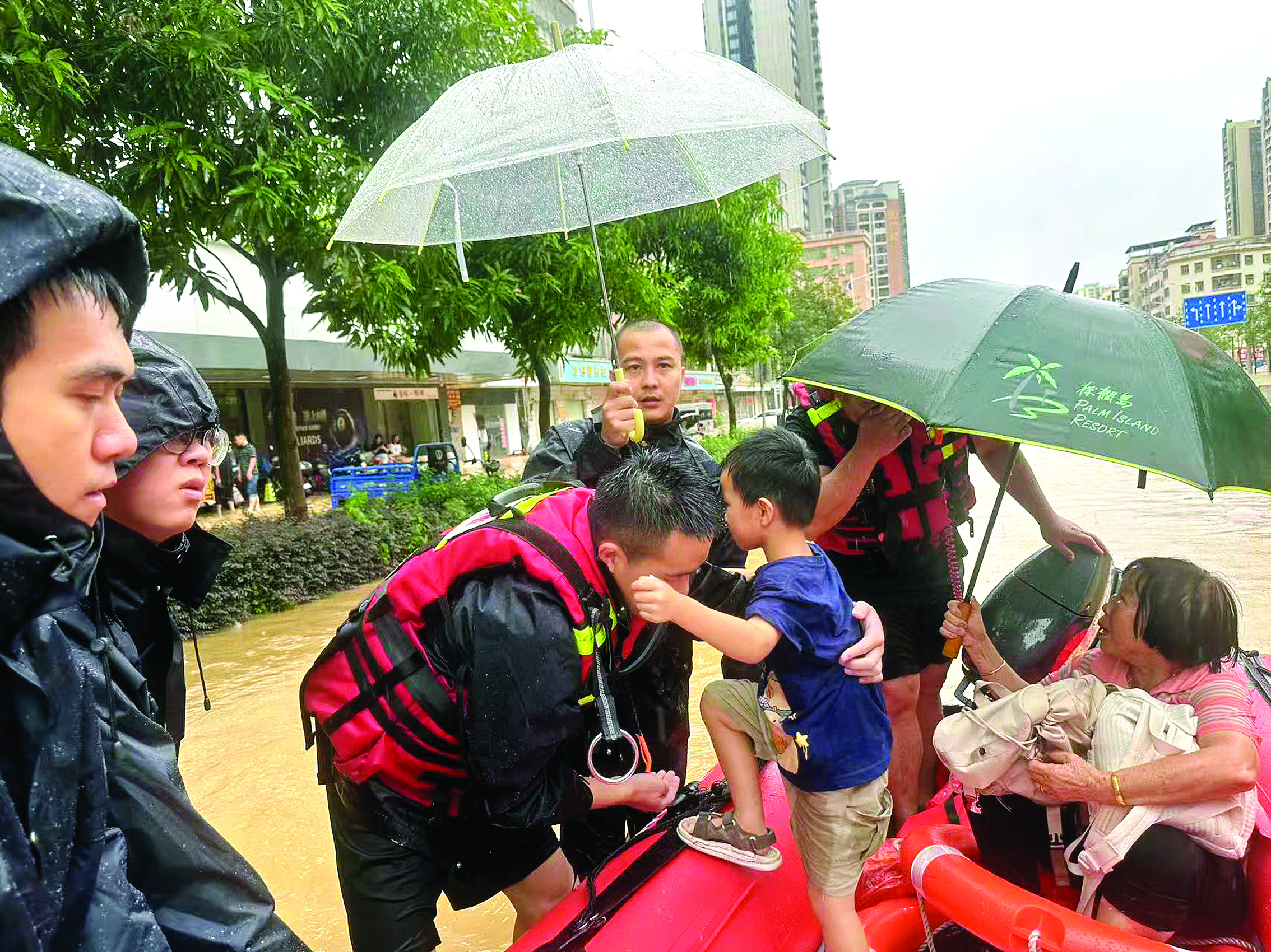8月5日,救援人員在惠陽轉(zhuǎn)移受困群眾。惠公宣供圖