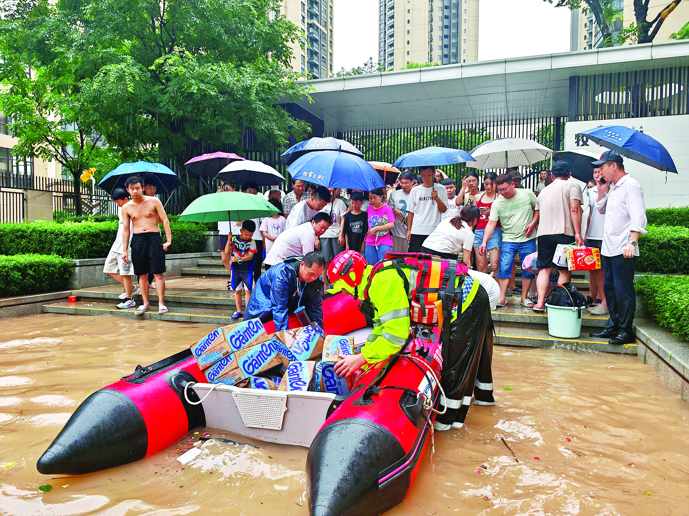 惠陽(yáng)秋長(zhǎng)街道應(yīng)急救援工作人員為受困小區(qū)運(yùn)送救援物資。 惠州日?qǐng)?bào)記者黃尉宏 通訊員林作棟 攝