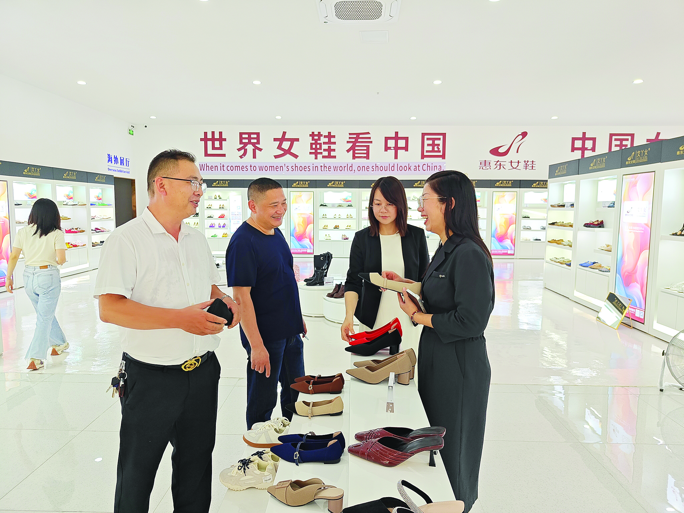 顧客在惠東女鞋全域銷售中心挑選女鞋。