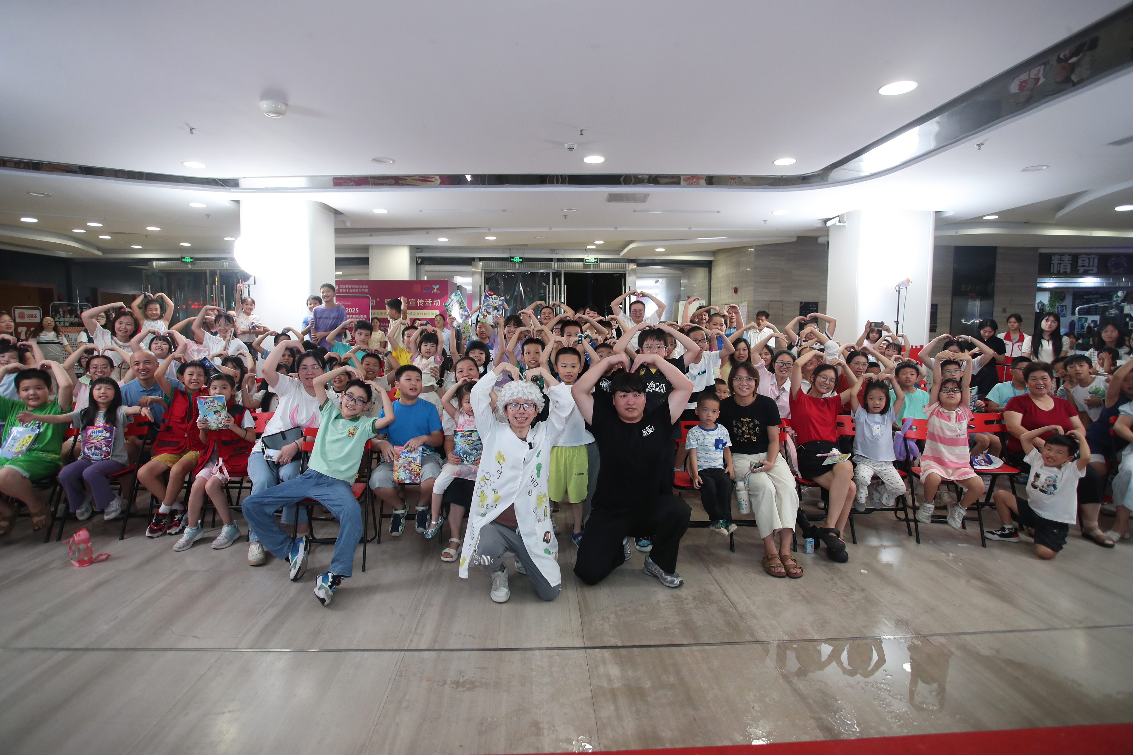 8月18日晚,米吳團隊做客南國書香節(jié)惠州書展,與孩子們互動游戲,并合影留念。