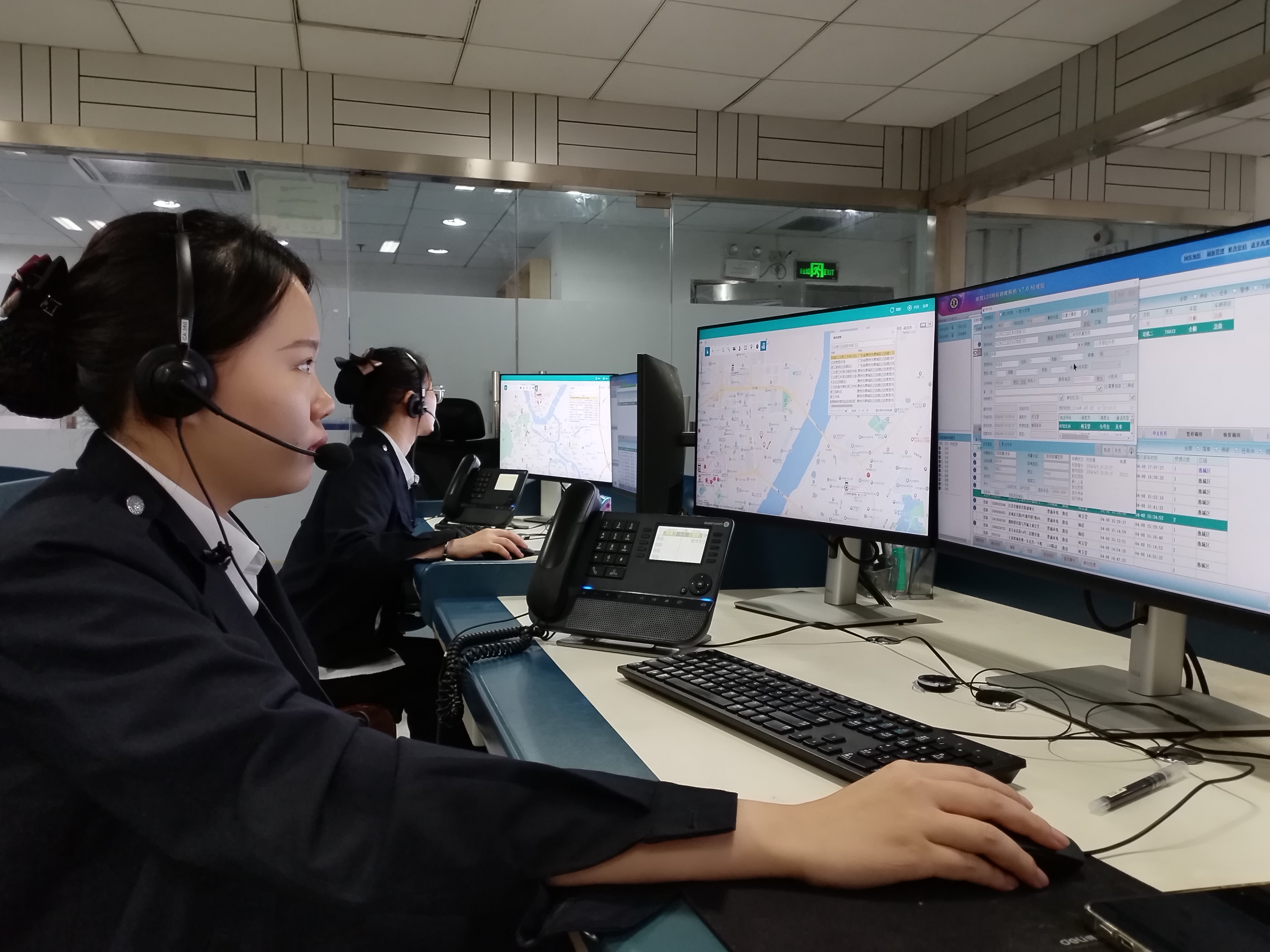 調(diào)度員何玉瑩在接聽市民來電。惠州日?qǐng)?bào)記者周智聰 攝