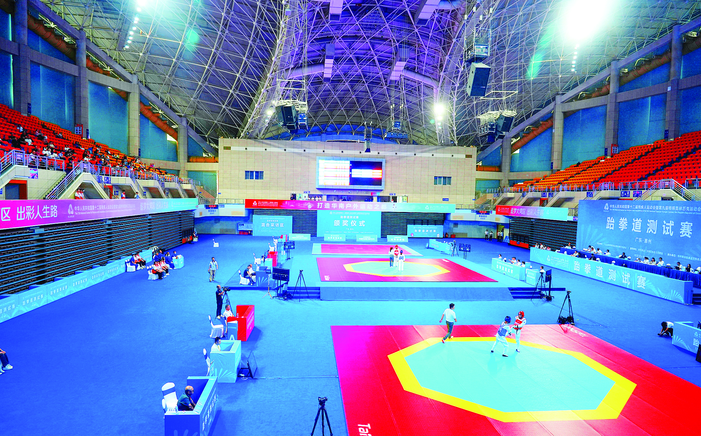 6月以來,惠州相繼成功舉辦殘?zhí)貖W會跆拳道測試賽、大眾跳繩測試賽。在這些“模擬考”中,惠州場館設施和服務讓參賽選手印象深刻。