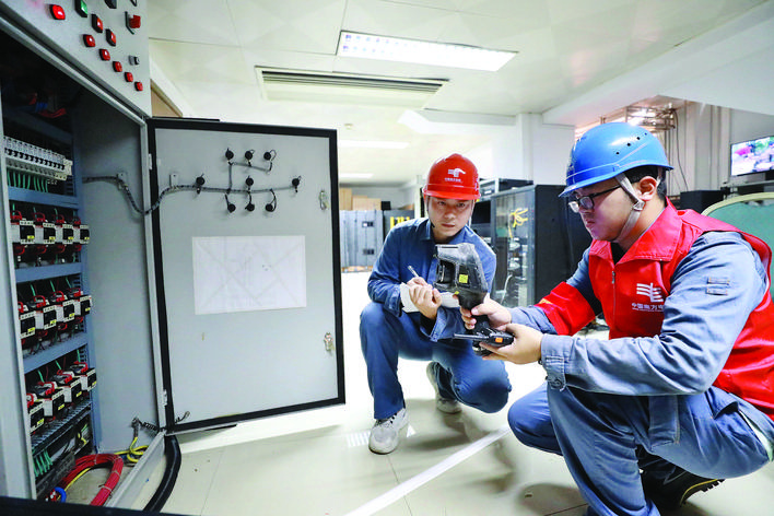 惠州供電工作人員檢查設(shè)備運(yùn)行狀況。惠州日?qǐng)?bào)記者楊建業(yè) 攝