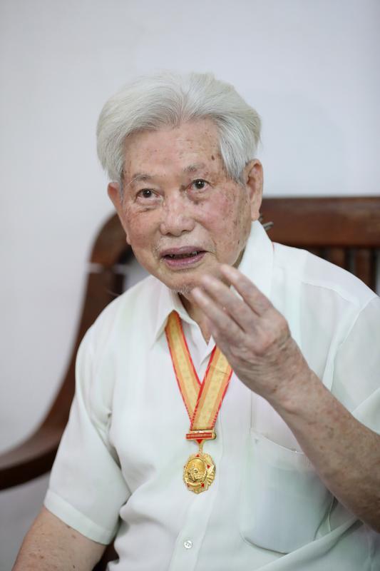 他白發(fā)蒼蒼,步履蹣跚,但腰桿依舊挺得筆直,說起話來中氣十足。回憶抗戰(zhàn)烽火歲月,老人激動(dòng)地說,“當(dāng)年面對強(qiáng)敵,游擊隊(duì)沒有后退一步,很多戰(zhàn)友犧牲了,我只是一個(gè)幸存者。我們都應(yīng)該珍惜今天的和平。”