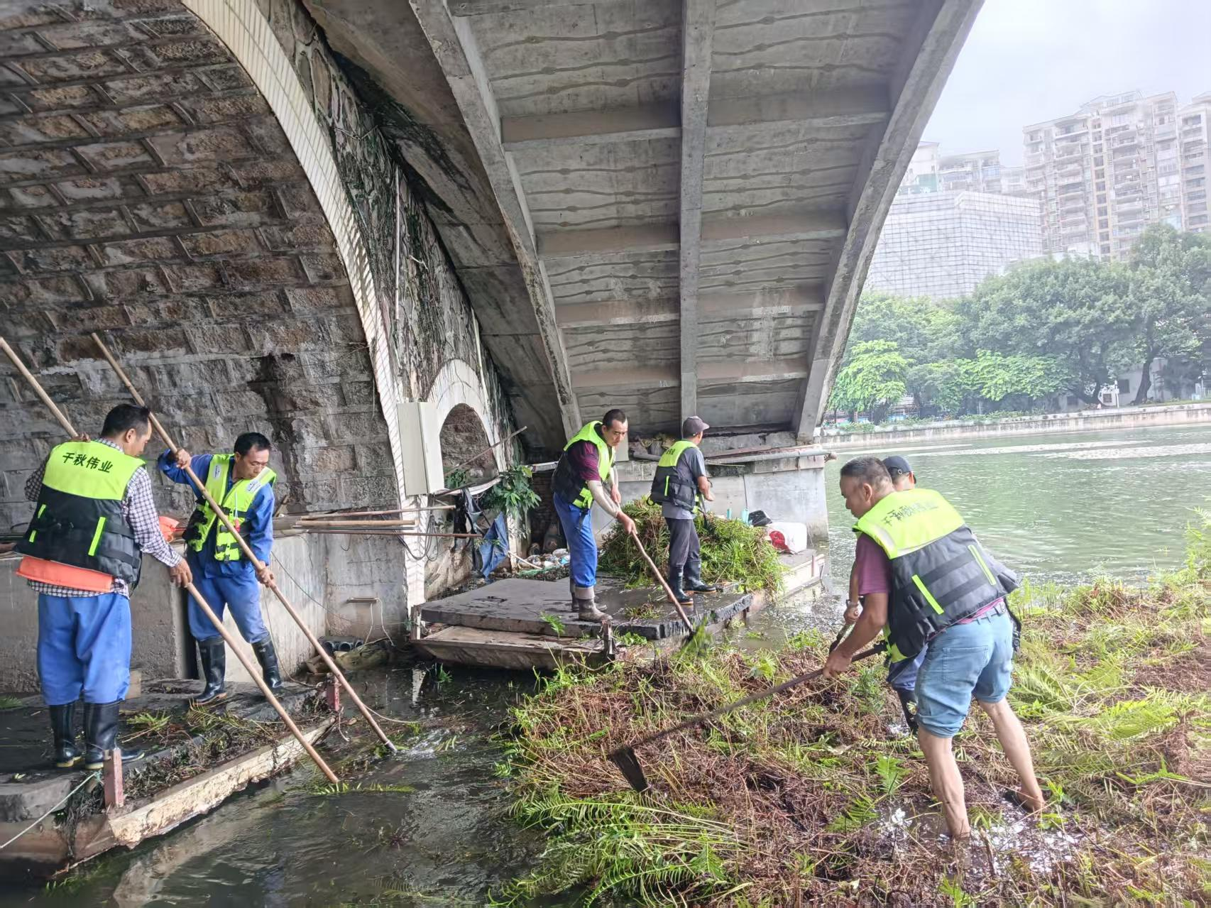 工作人員對(duì)老化的生態(tài)浮島及雜草進(jìn)行清理作業(yè)。惠州市西湖景區(qū)管理中心供圖
