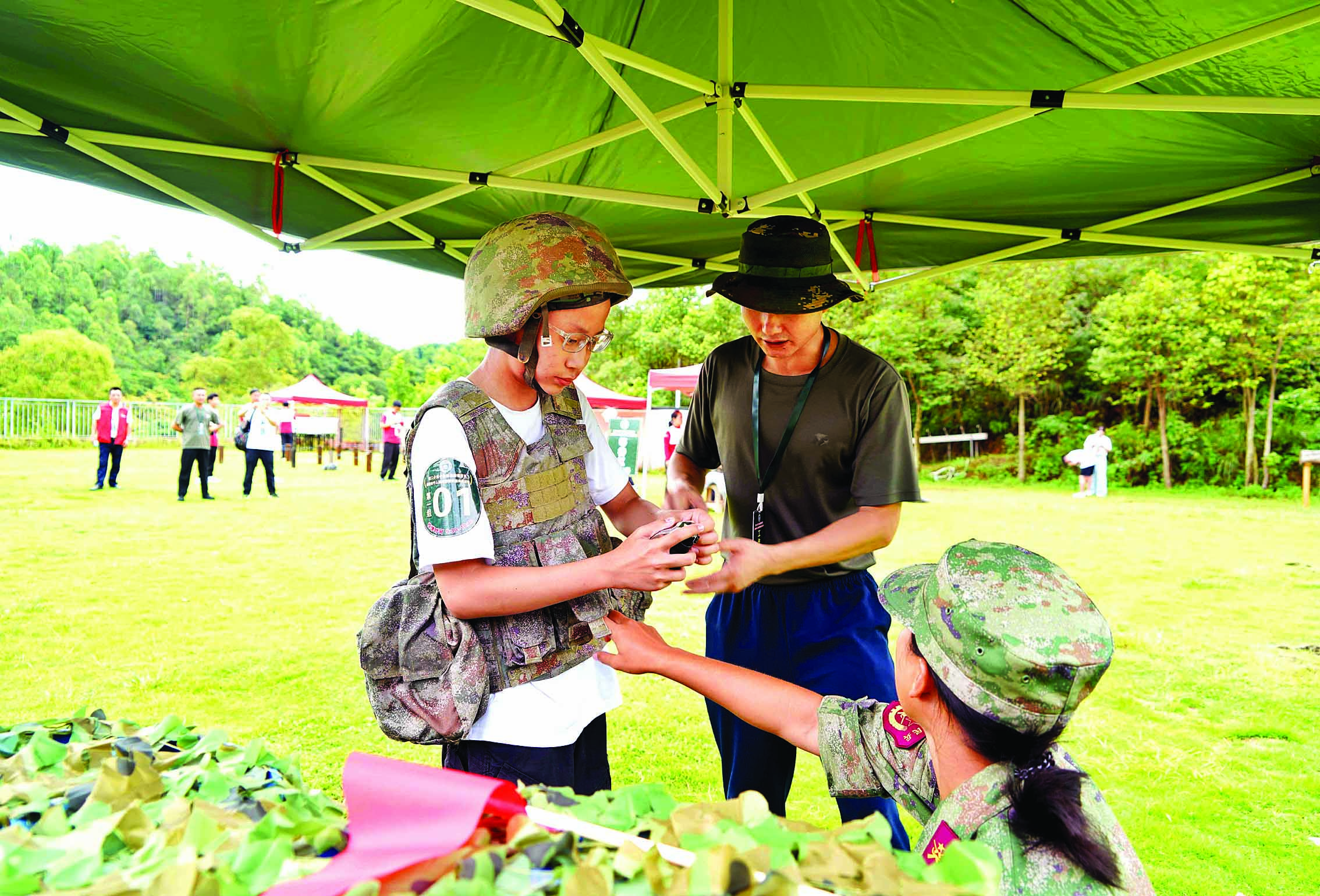 國旗冉冉升起,國歌聲響徹云霄;模擬手榴彈投擲區(qū)排起長龍,孩子們躍躍欲試;國防教育展覽廳內(nèi),小小講解員聲情并茂地講述英雄故事……