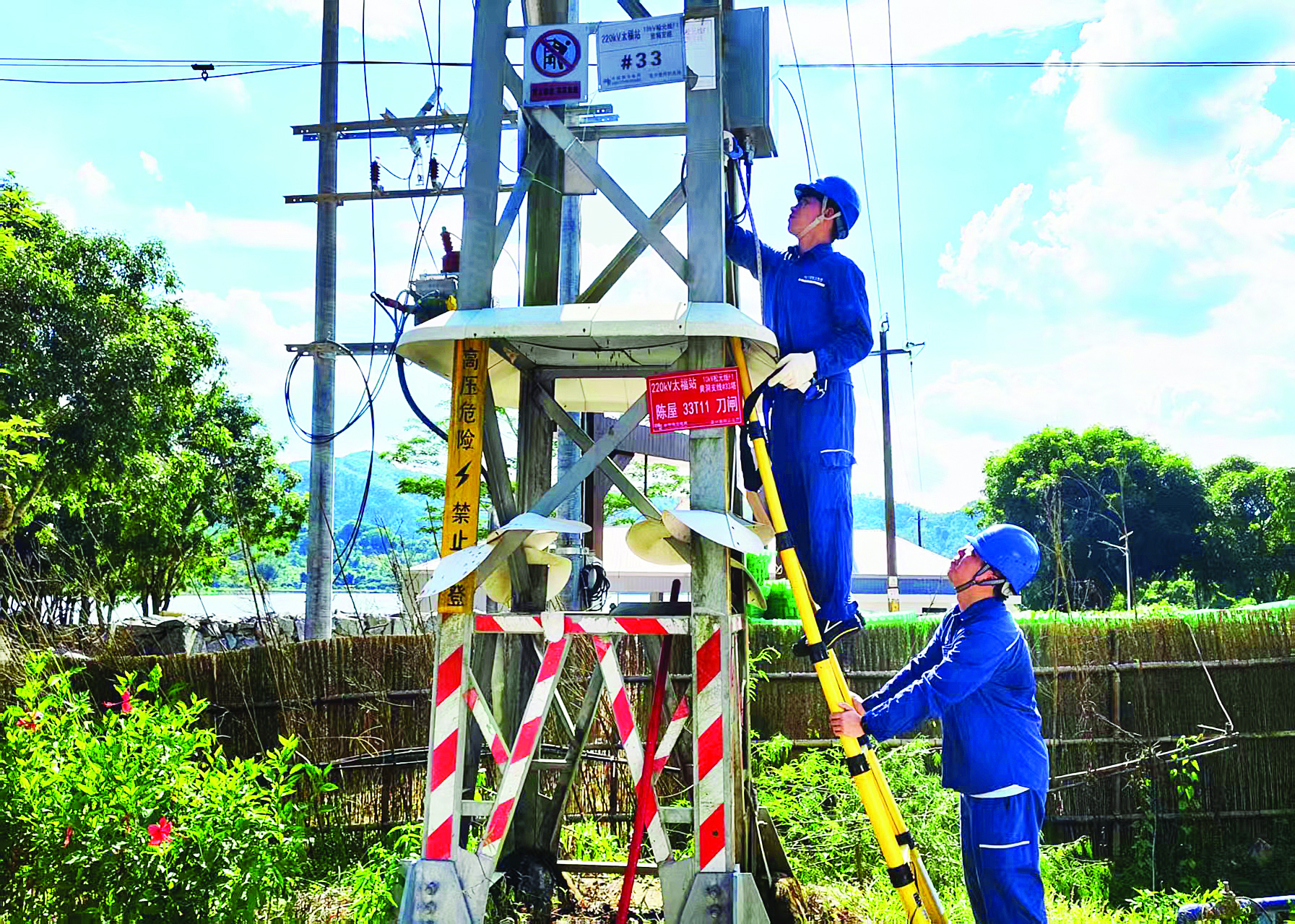 南方電網(wǎng)廣東惠州惠陽(yáng)供電局的青年突擊隊(duì)隊(duì)員細(xì)致巡檢電網(wǎng)設(shè)備。 惠州日?qǐng)?bào)記者駱國(guó)紅 通訊員陳凌 曾韻詩(shī) 攝