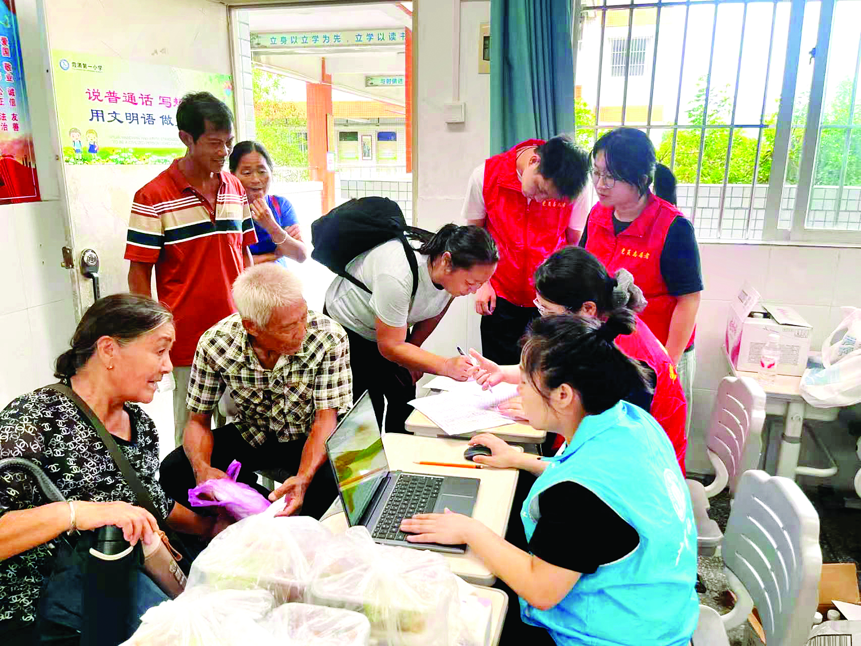 9月23日,博羅縣鎮(zhèn)村干部迅速下沉各村(社區(qū)),全面排查轄區(qū)的重點區(qū)域場所和重點人群,妥善轉(zhuǎn)移群眾,開放安全避難場所。“阿叔,生命最重要,把門鎖好,跟我們走。”當(dāng)天下午,博羅縣公莊鎮(zhèn)壩子村的村干部、社工開展進(jìn)一步巡查時,發(fā)現(xiàn)獨居老人許伯仍在家中未轉(zhuǎn)移。經(jīng)了解發(fā)現(xiàn),老人覺得臺風(fēng)還沒來,又怕家里丟東西,不愿轉(zhuǎn)移。于是,村干部對其進(jìn)行反復(fù)勸說,成功將老人勸離,安排到就近親戚家暫住。當(dāng)晚,在博羅縣園洲鎮(zhèn)九潭社區(qū)臨時轉(zhuǎn)移安置點內(nèi),被轉(zhuǎn)移安置的群眾領(lǐng)取了熱乎的晚餐,有序就餐。