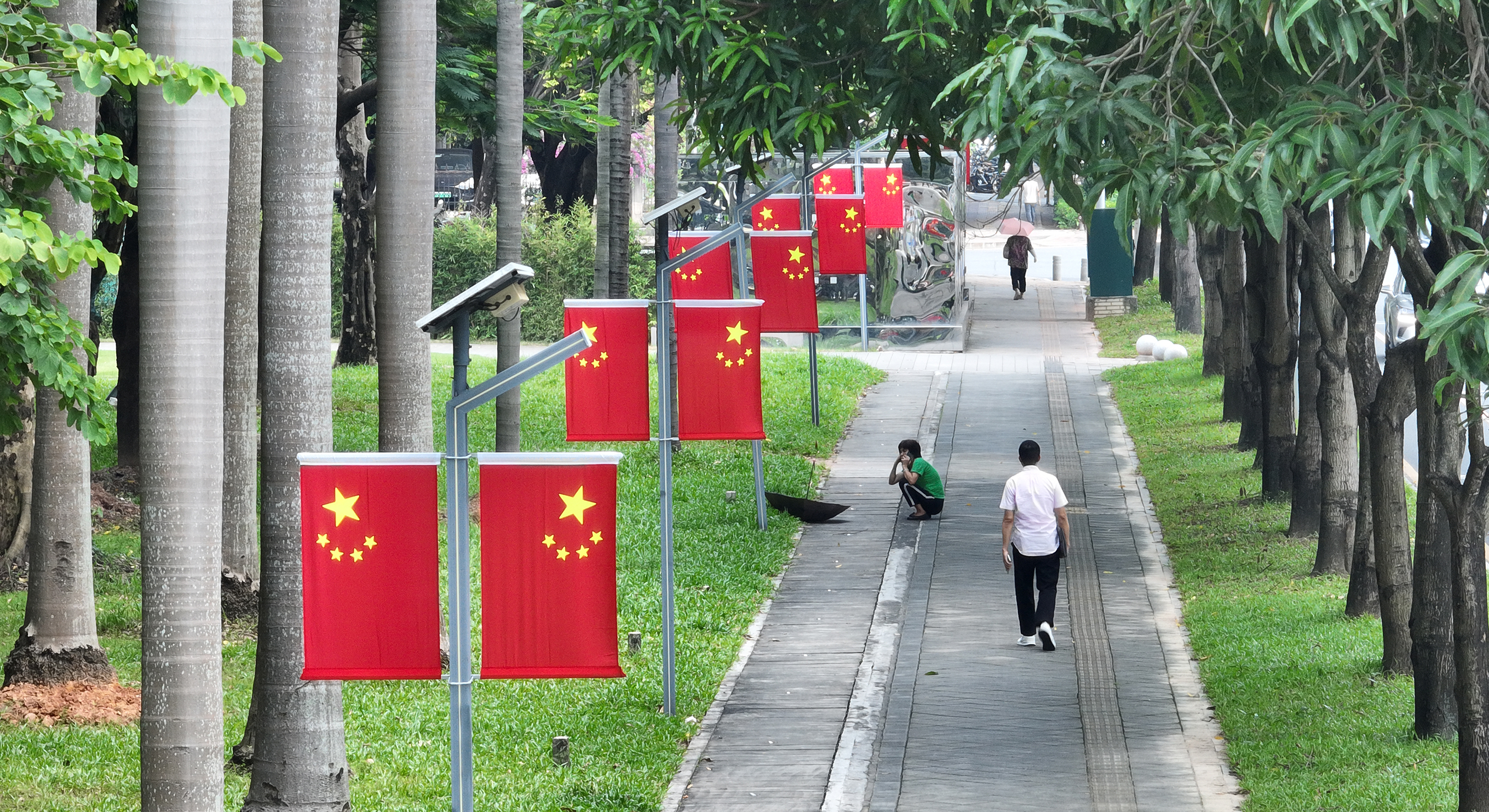國(guó)慶節(jié),惠州城區(qū)五星紅旗掛滿大街小巷,滿眼皆是“中國(guó)紅”,用“中國(guó)紅”裝扮道路、公園和景區(qū),將國(guó)慶的氛圍感拉滿,洋溢著喜慶熱烈的節(jié)日氣氛。
