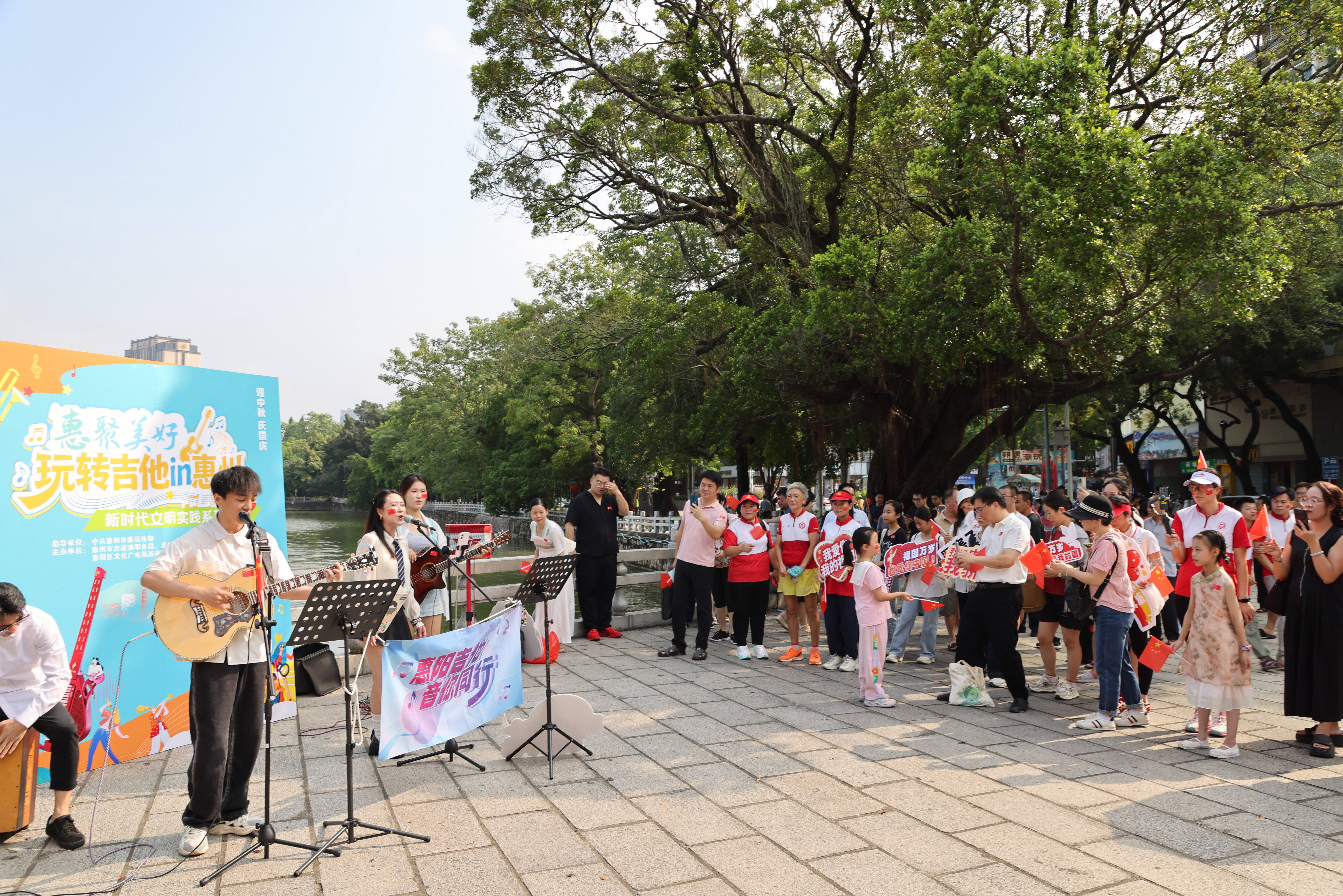 這是“惠聚美好”新時(shí)代文明實(shí)踐活動(dòng)——“玩轉(zhuǎn)吉他in惠州”國(guó)慶吉他快閃系列活動(dòng)首場(chǎng)活動(dòng),吸引眾多市民游客參與,點(diǎn)燃國(guó)慶歡樂(lè)熱潮。